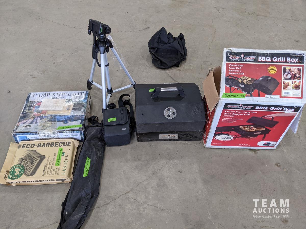 Camp stove kit, BBQ grill box, Eco BBQ grill, camera tripod with case
