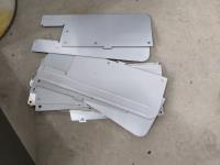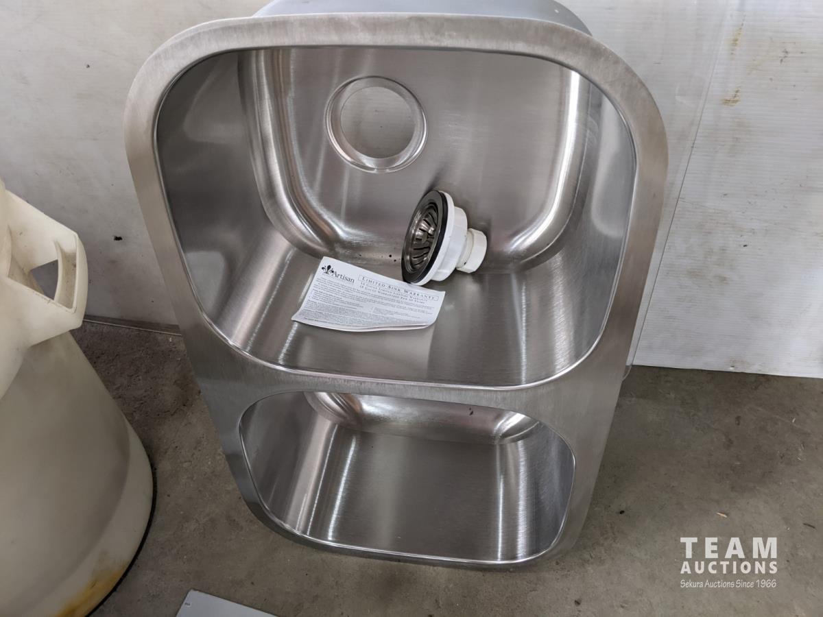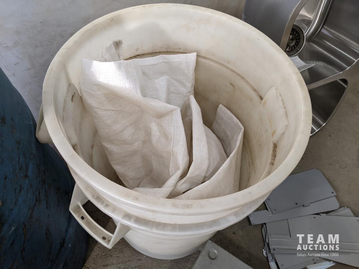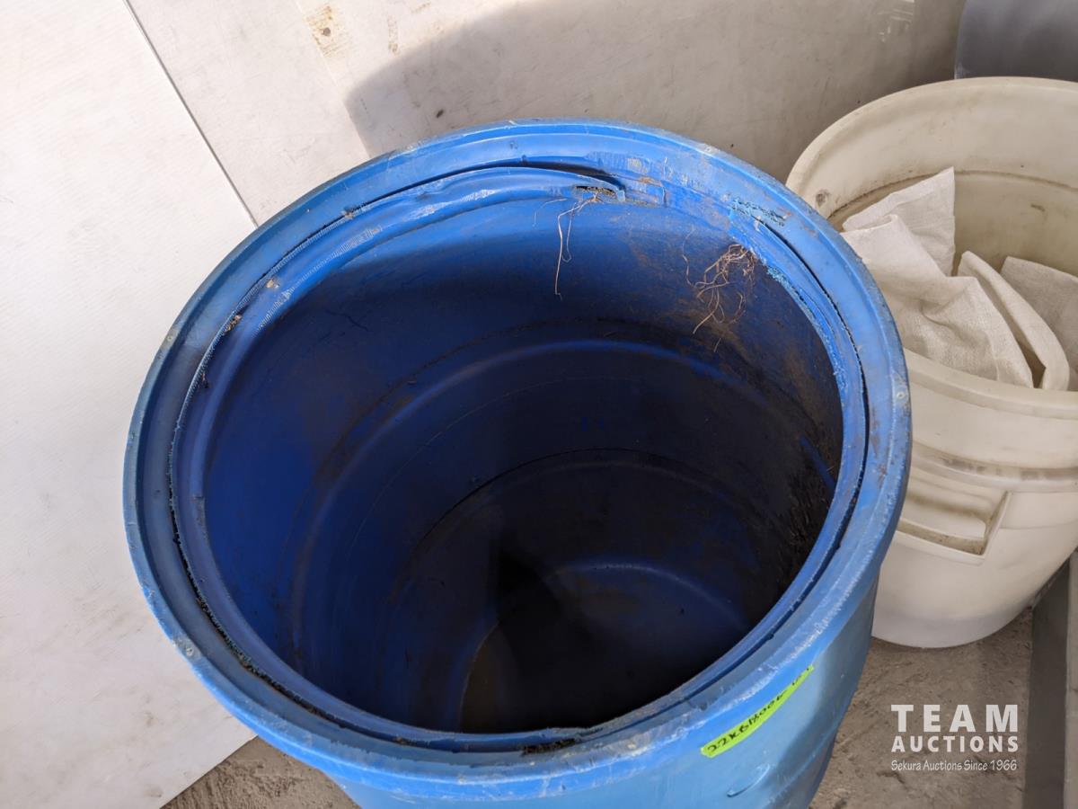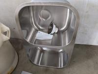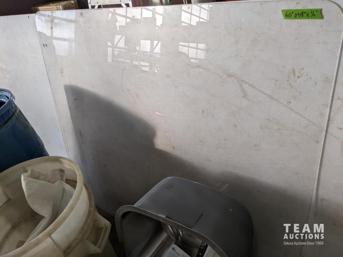Rain barrel, (2) garbage cans, 60 inch x 48 inch x 1/4 inch plexi-glass, double steel drawer and double stainless steel sink 30 inch x 17-3/4 inch bowl depth 10 inch