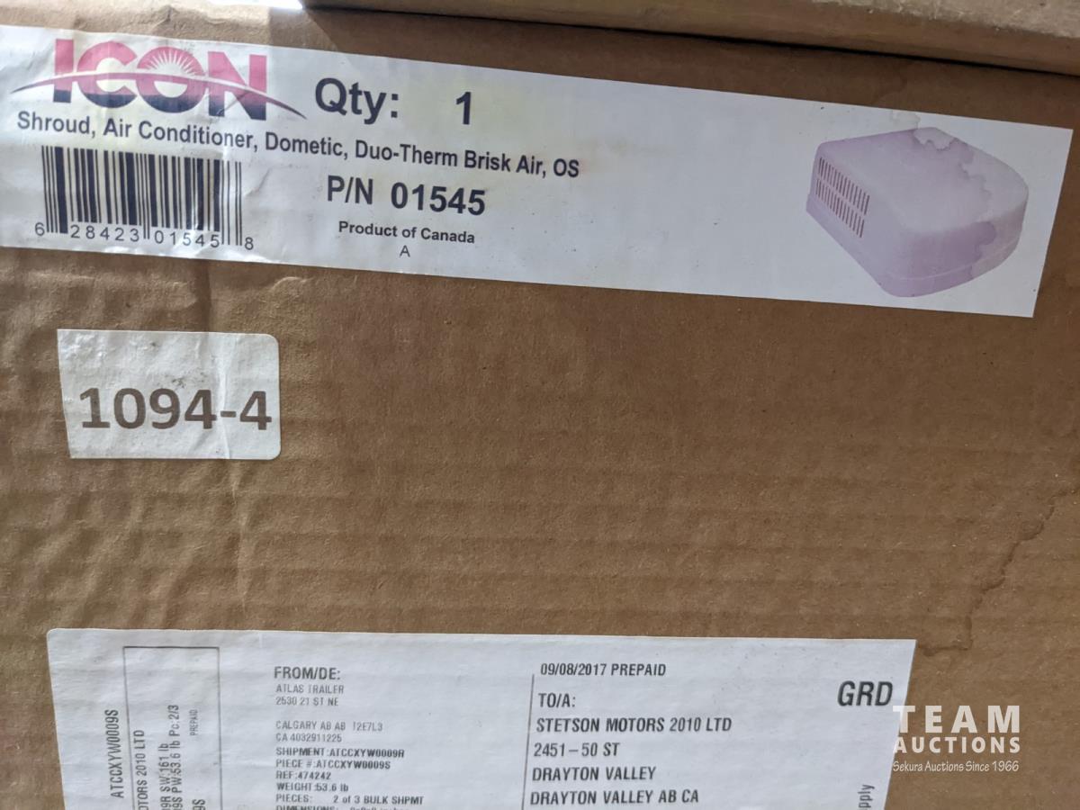 (3) A/C shrouds, skylight, 20L aluminum brightener, roll of carpet plastic