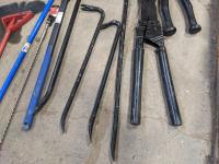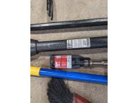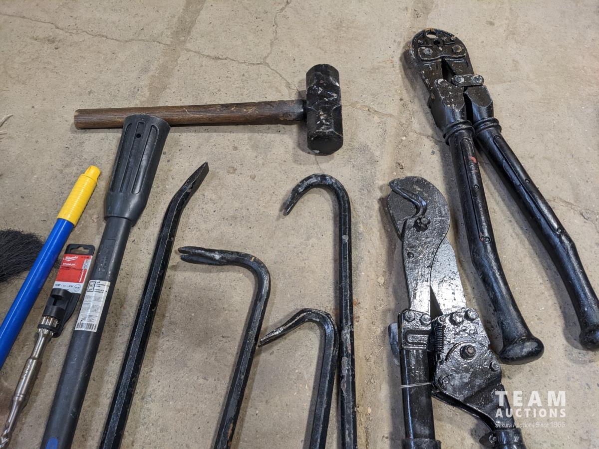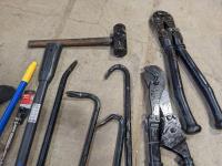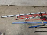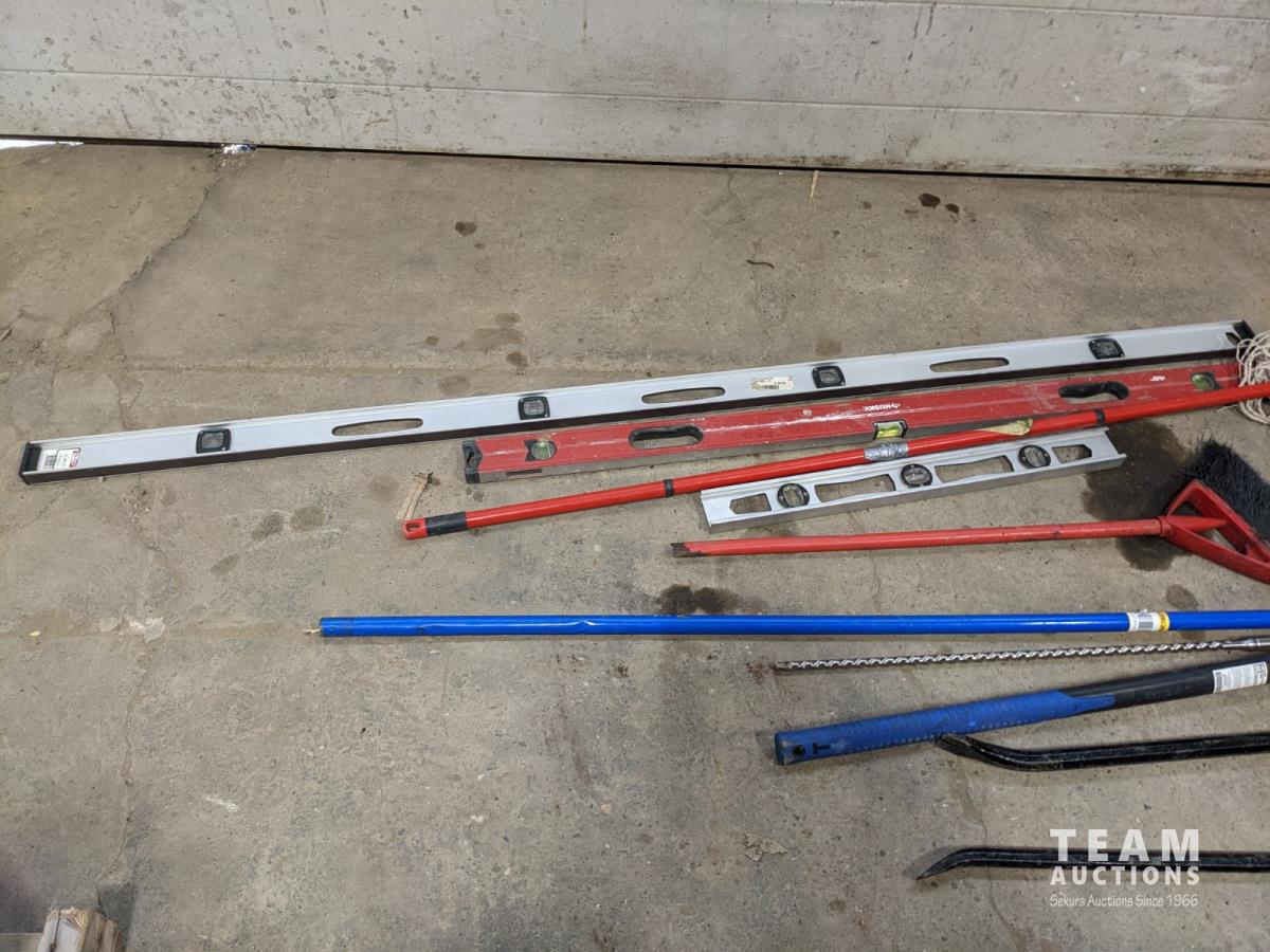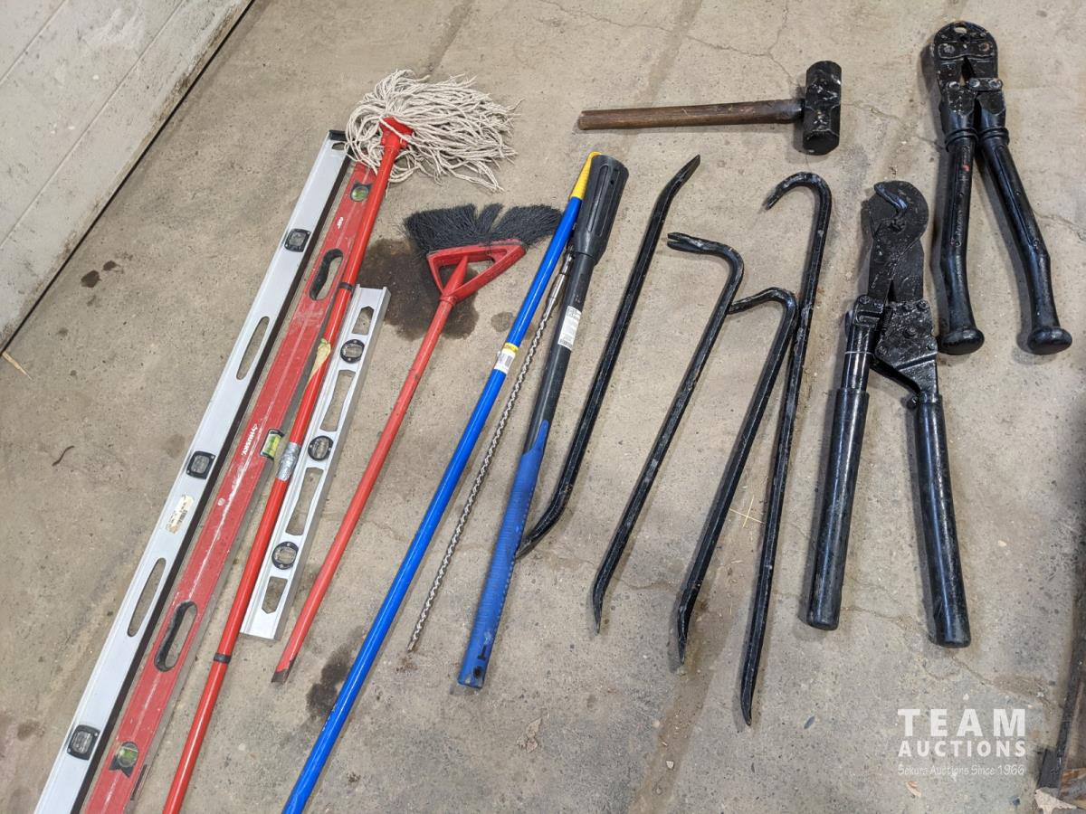 Levels, mop, bolt cutters, crow bars, hammer