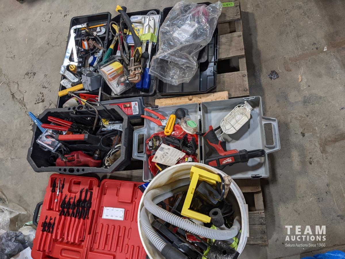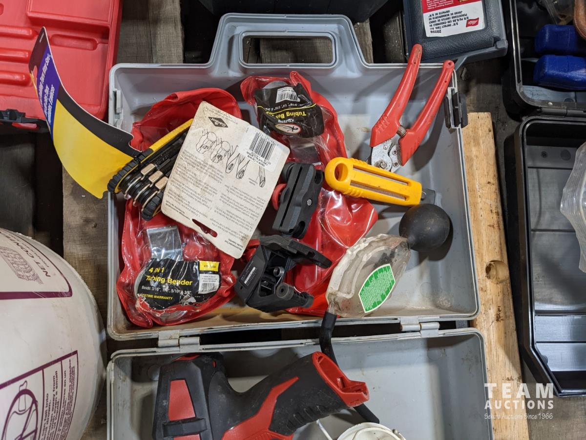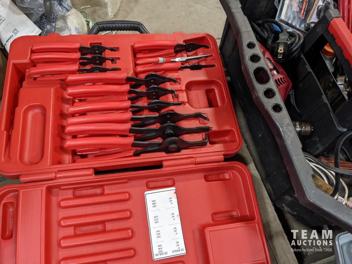 Miscellaneous hand tools, retaining ring plier set, Milwaukee clamp gun, HVAC/R (no batteries)