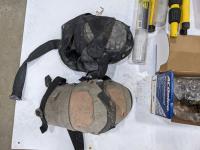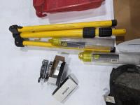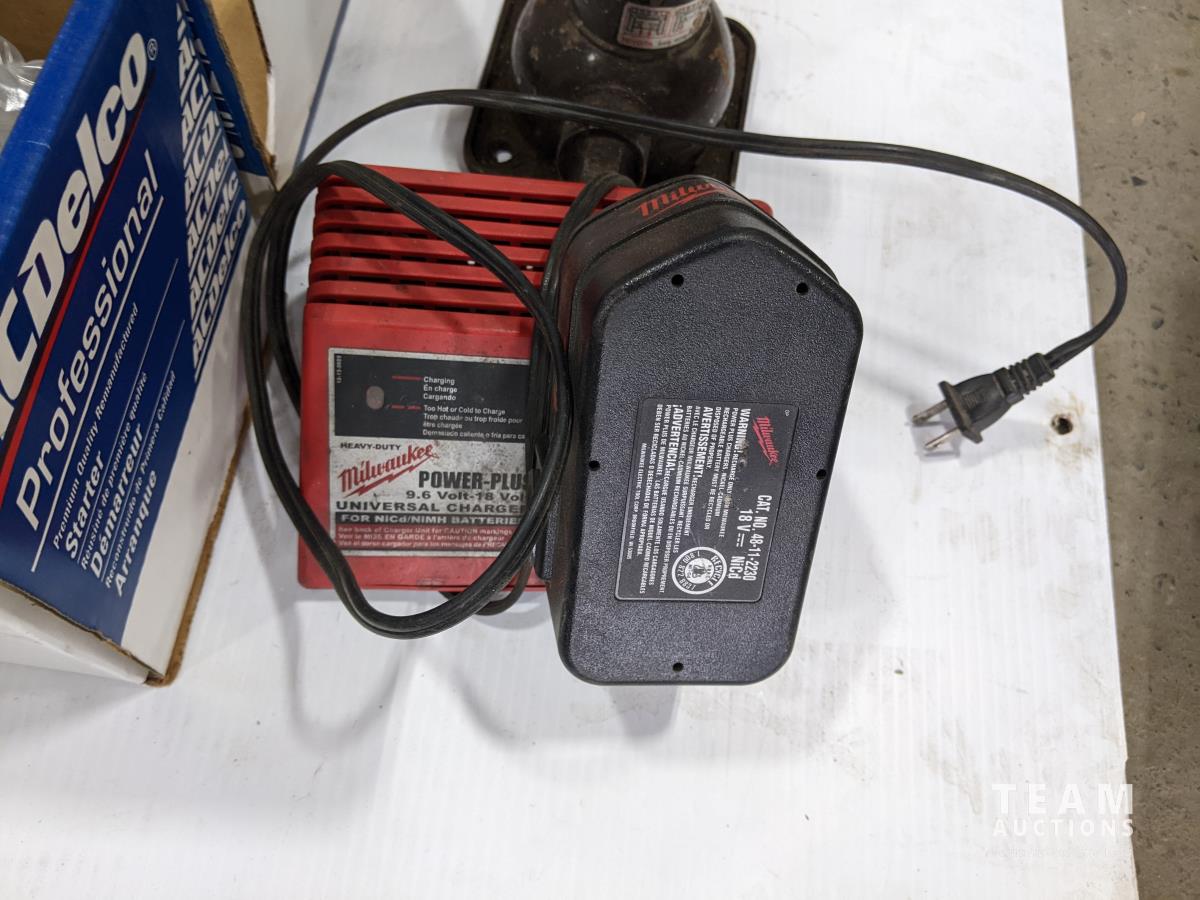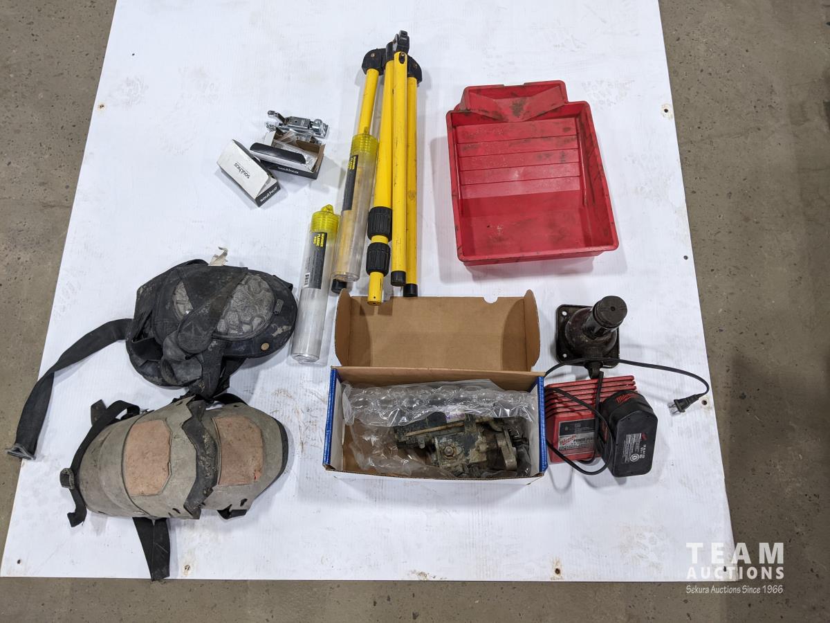 18v Millwaukee battery and charger, tripod stand, knee pads, cabinet latch handles and starter