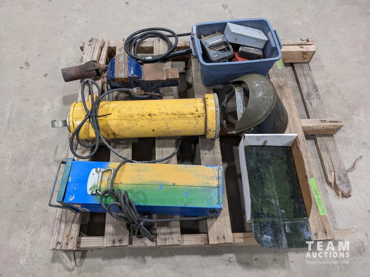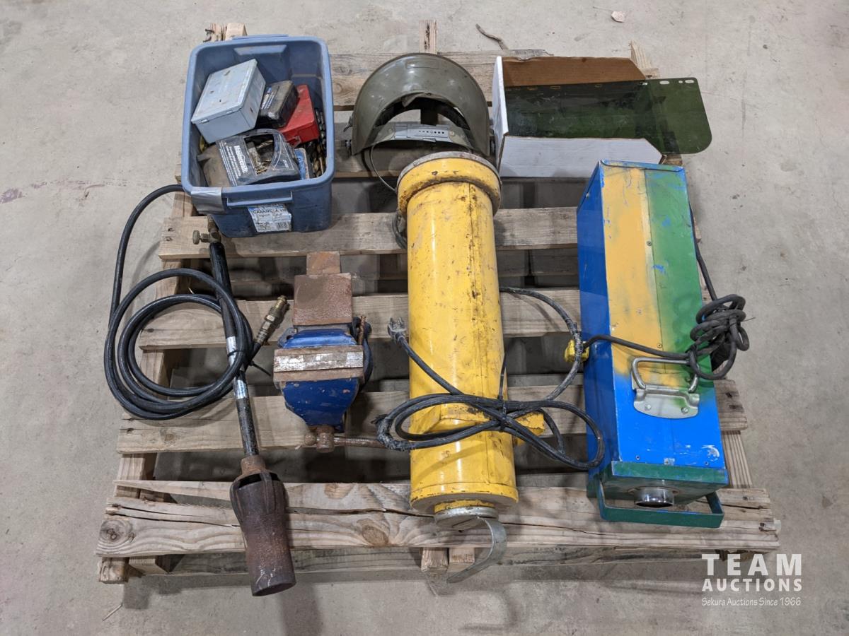 (2) welding rod ovens, tiger torch, bench vice, assorted bits, welding helmet