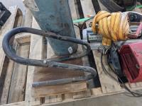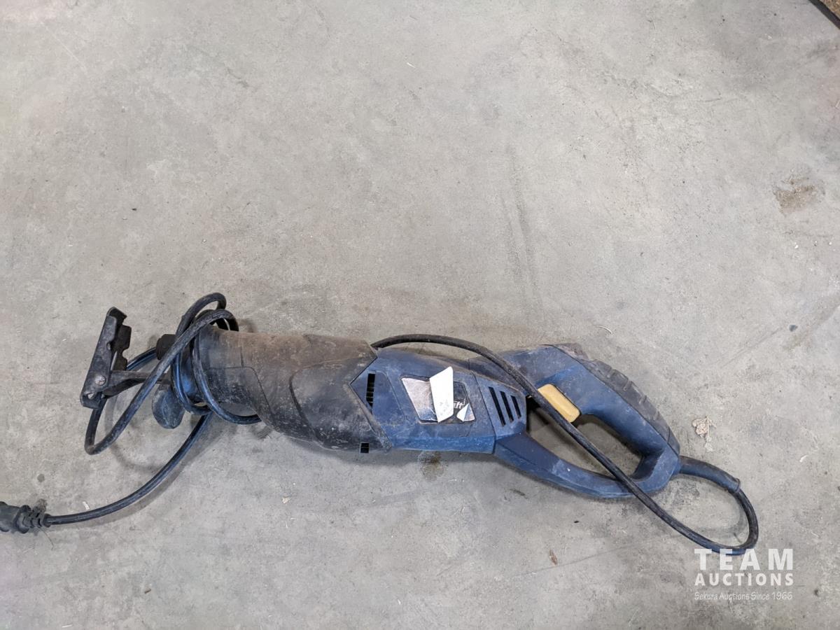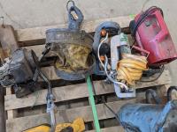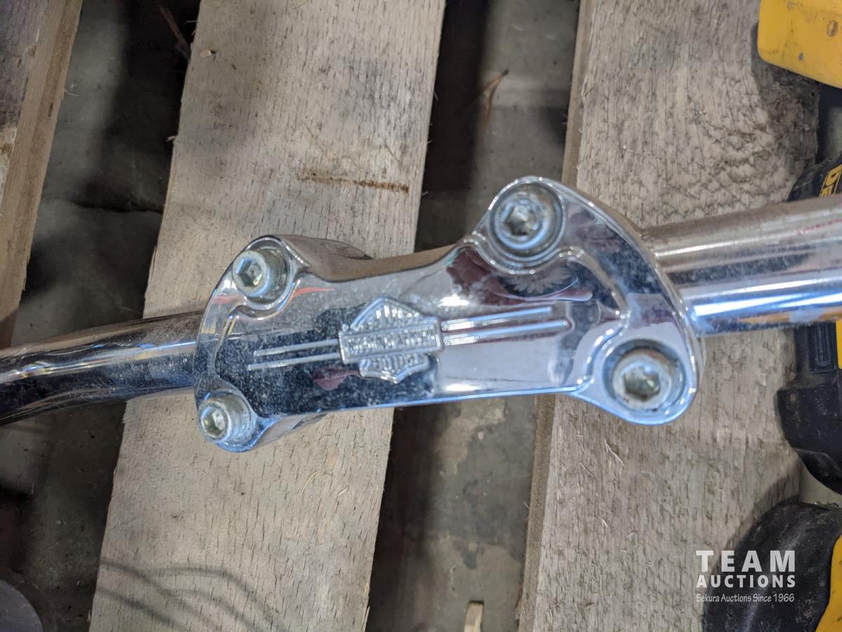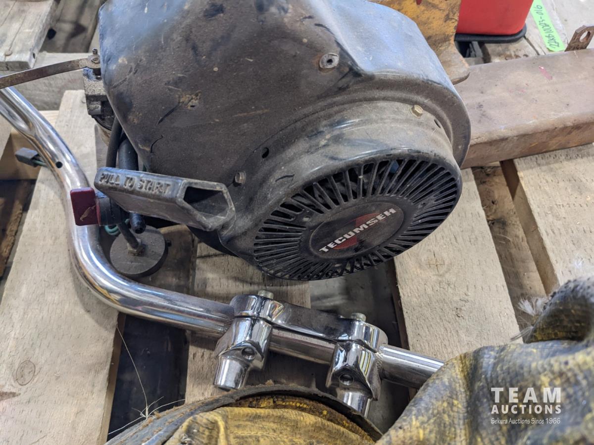 DeWalt vacuum, motorcycle wheel chock, Mastercraft reciprocating saw, sprinklers, rod oven, Hoover Porta power (untested), Tecumseh motor (untested), Harley motorcycle handle bar