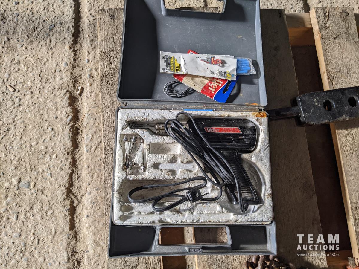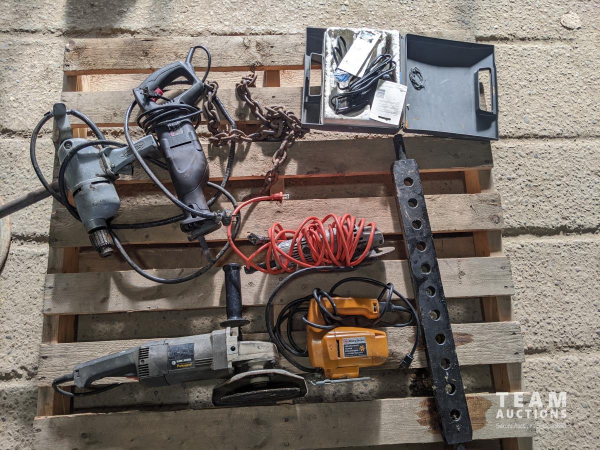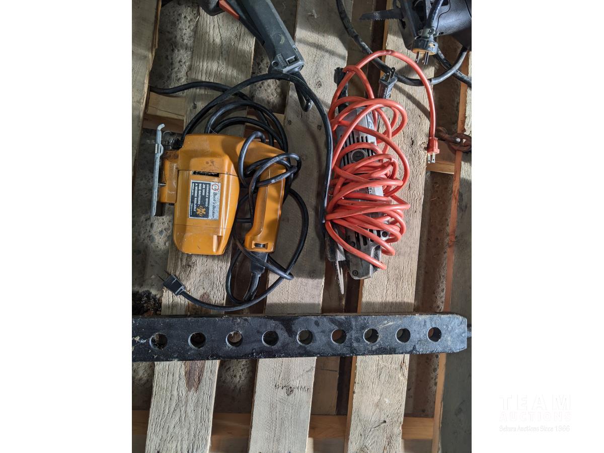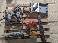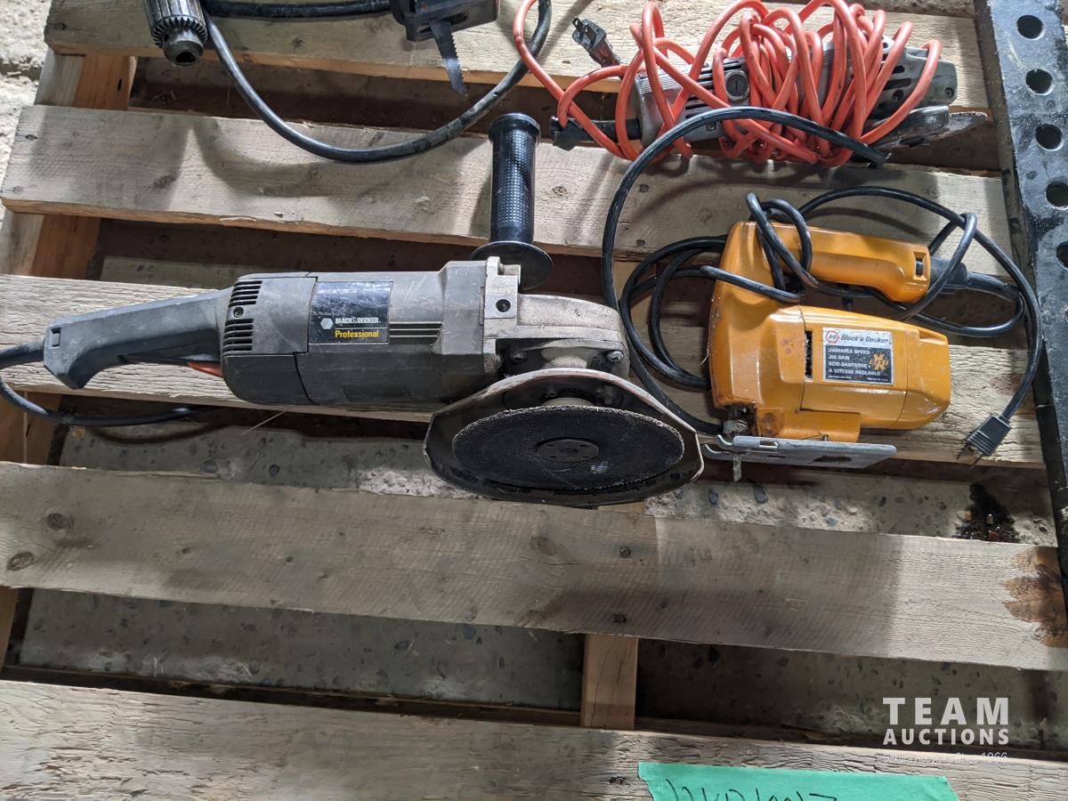 Black & Decker grinder and jigsaw, drill, Jobmate reciprocating saw and Weller soldering gun