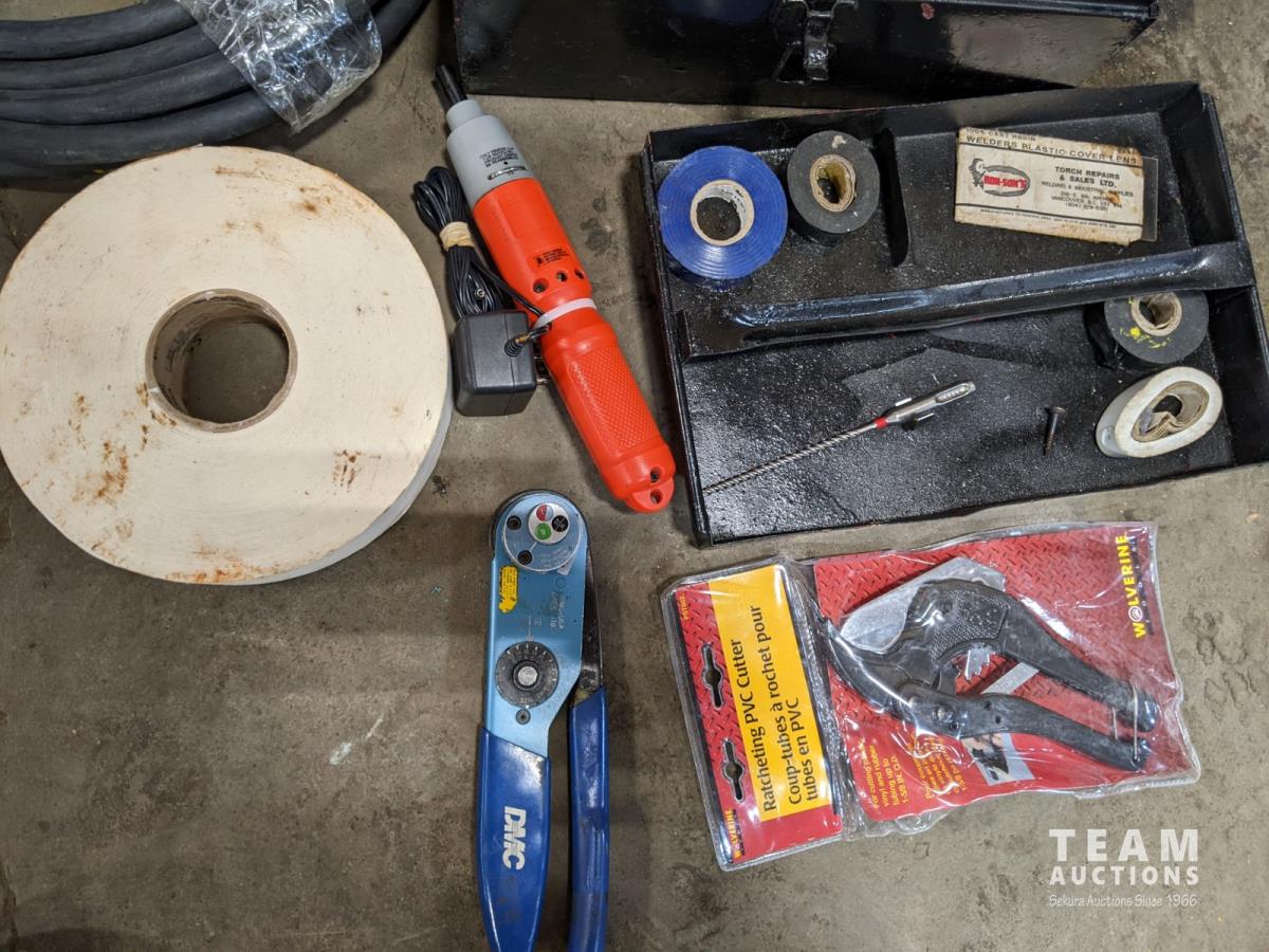 Milwaukee 7-1/4 circular saw, Black & Decker electric screwdriver, crimping tool, PVC cutter