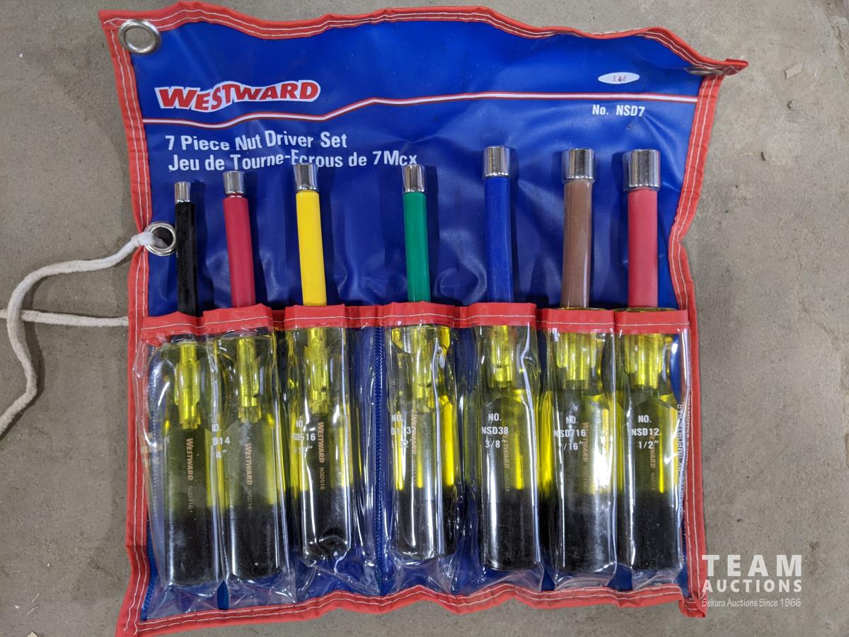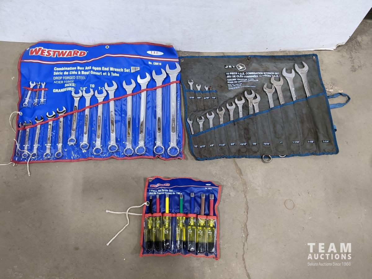 Westward combination box & open end wrench set, Westward 7 piece nut driver set and jet 16 piece SAE combination wrench set