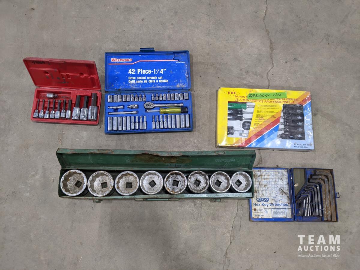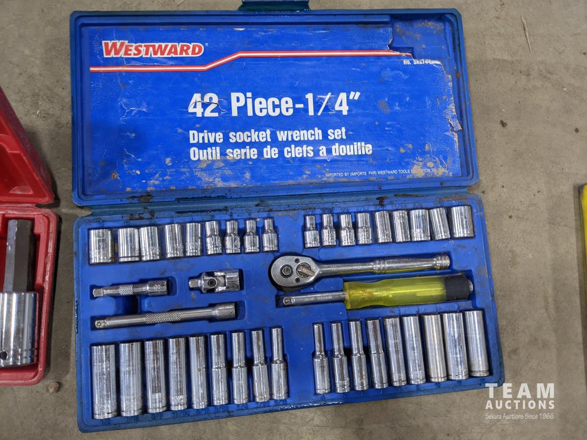 Westward 42 piece 1/4 inch wrench set, 14 piece screwdriver set, hex key wrenches, 3/4 inch socket set and wrench set