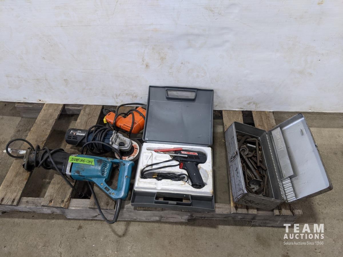 Reciprocating saw, electric drill, Mastercraft grinder, soldering gun and quantity of allen keys