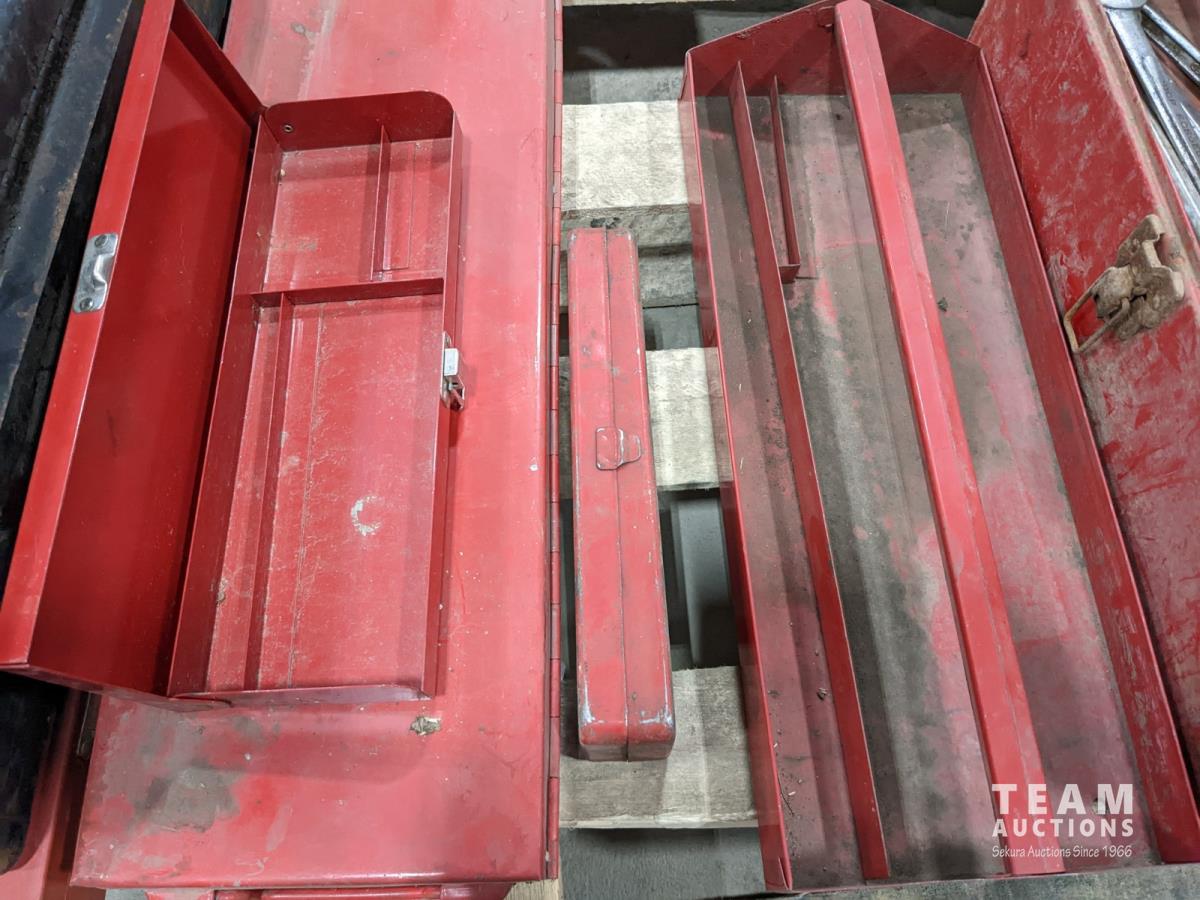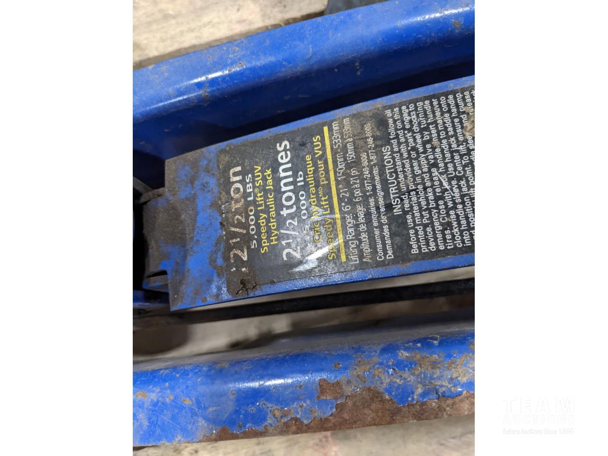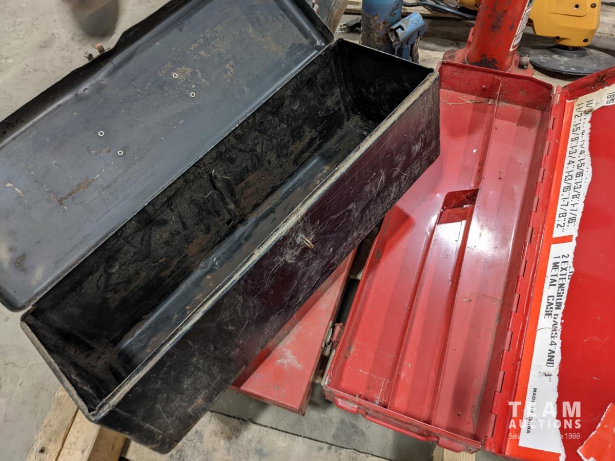 1063 Assorted Tool Boxes, Bottle Jacks, Floor Jack and Sanders