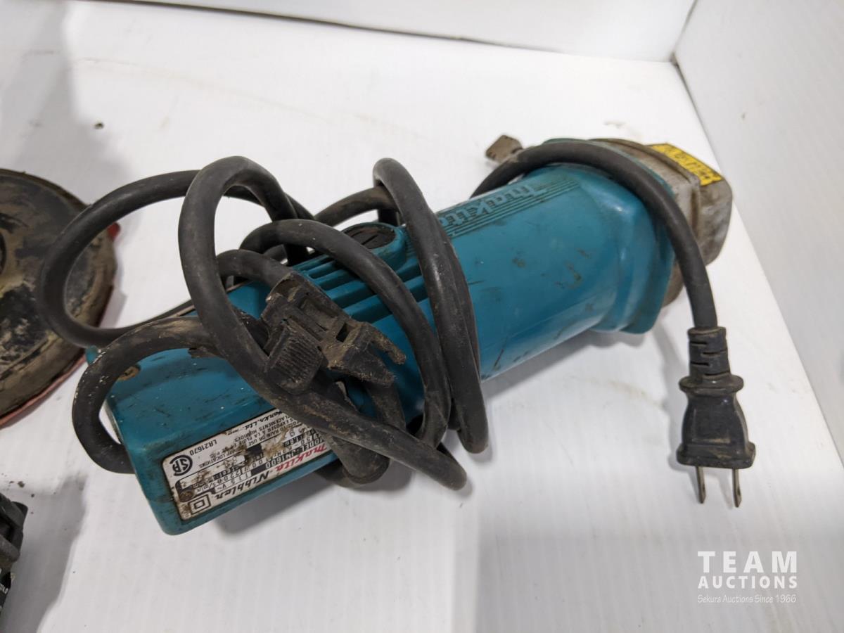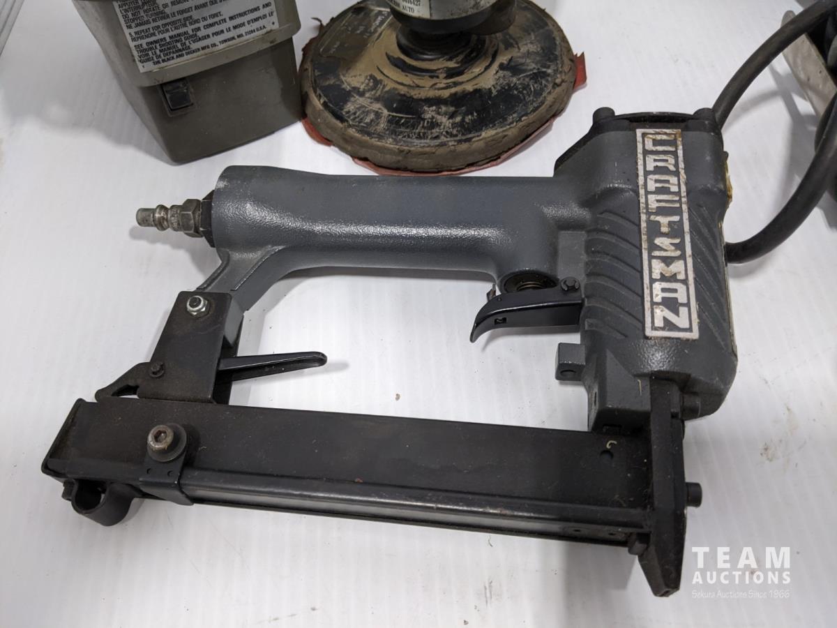 Sears/Craftsman 1/2 inch crown stapler, Black & Decker drill bit sharpener, Princess Auto dual action 6 inch air sander and Makita nibbler