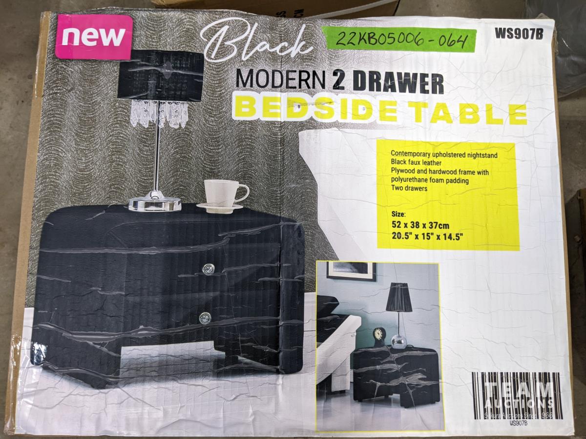 1971 Black Modern 2 Drawer Bedside Table (Unused)