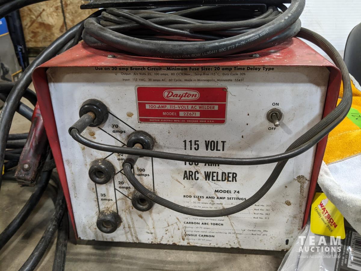 1007 Dayton Electric Arc Welder, Welding Helmets, Gloves and Torch