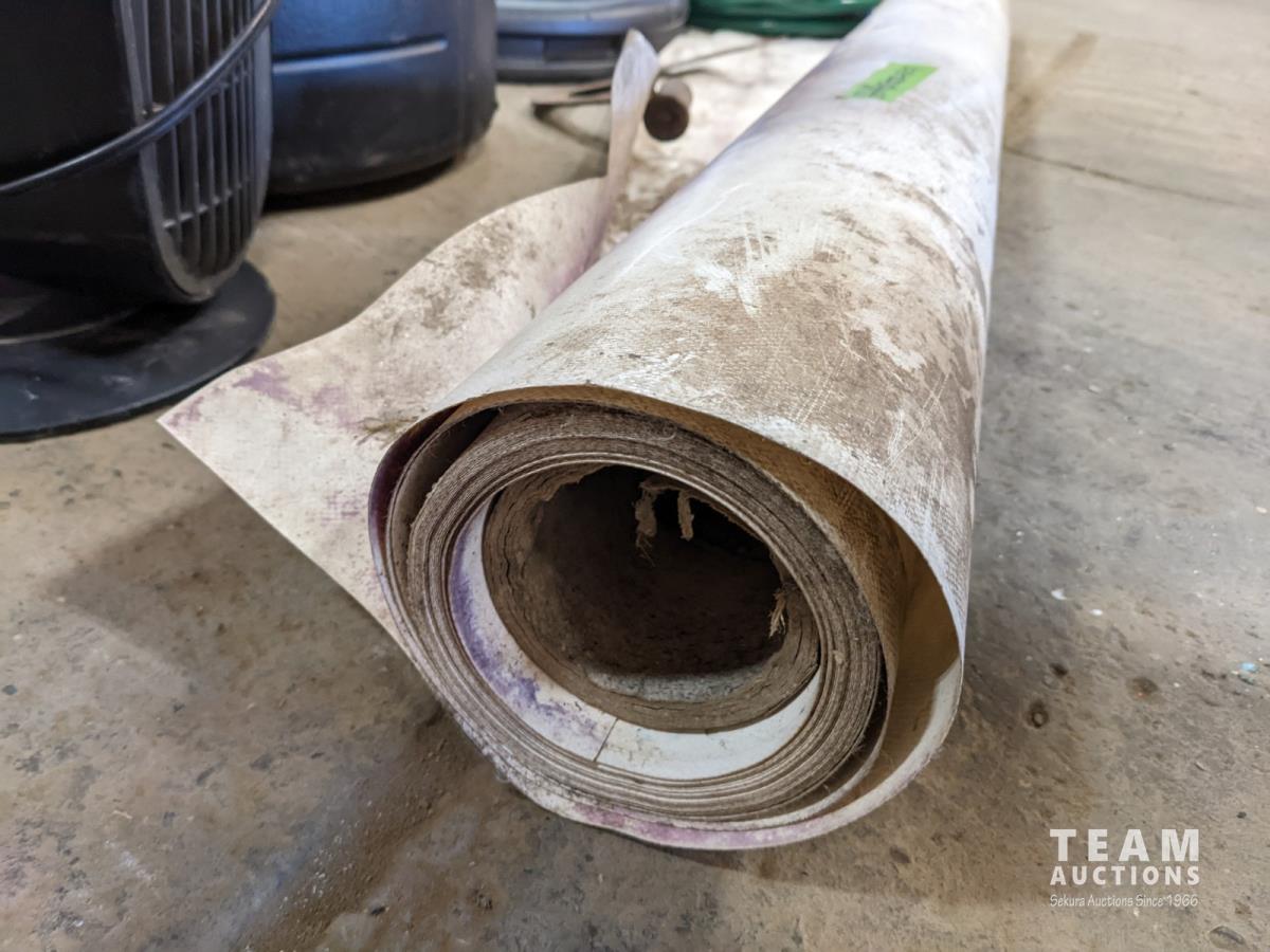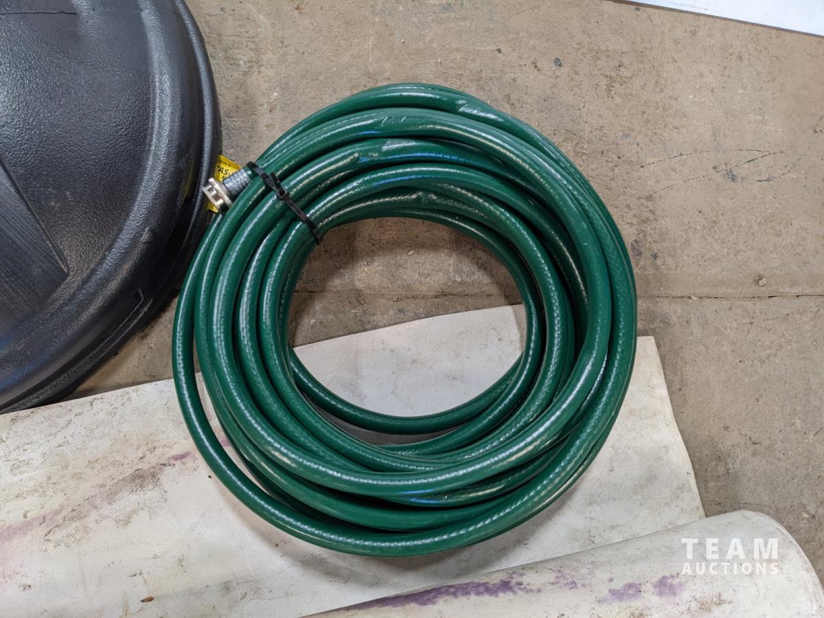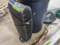 1111 Garbage Can, Honeywell Fan, Partial Roll of Vinyl Wrap, Garden Hose, Sickle