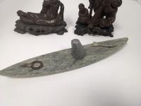 1614 Inuit Soap Stove Carving and (2) Chinese Figurines