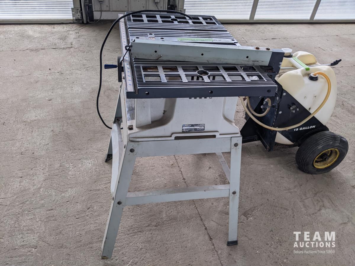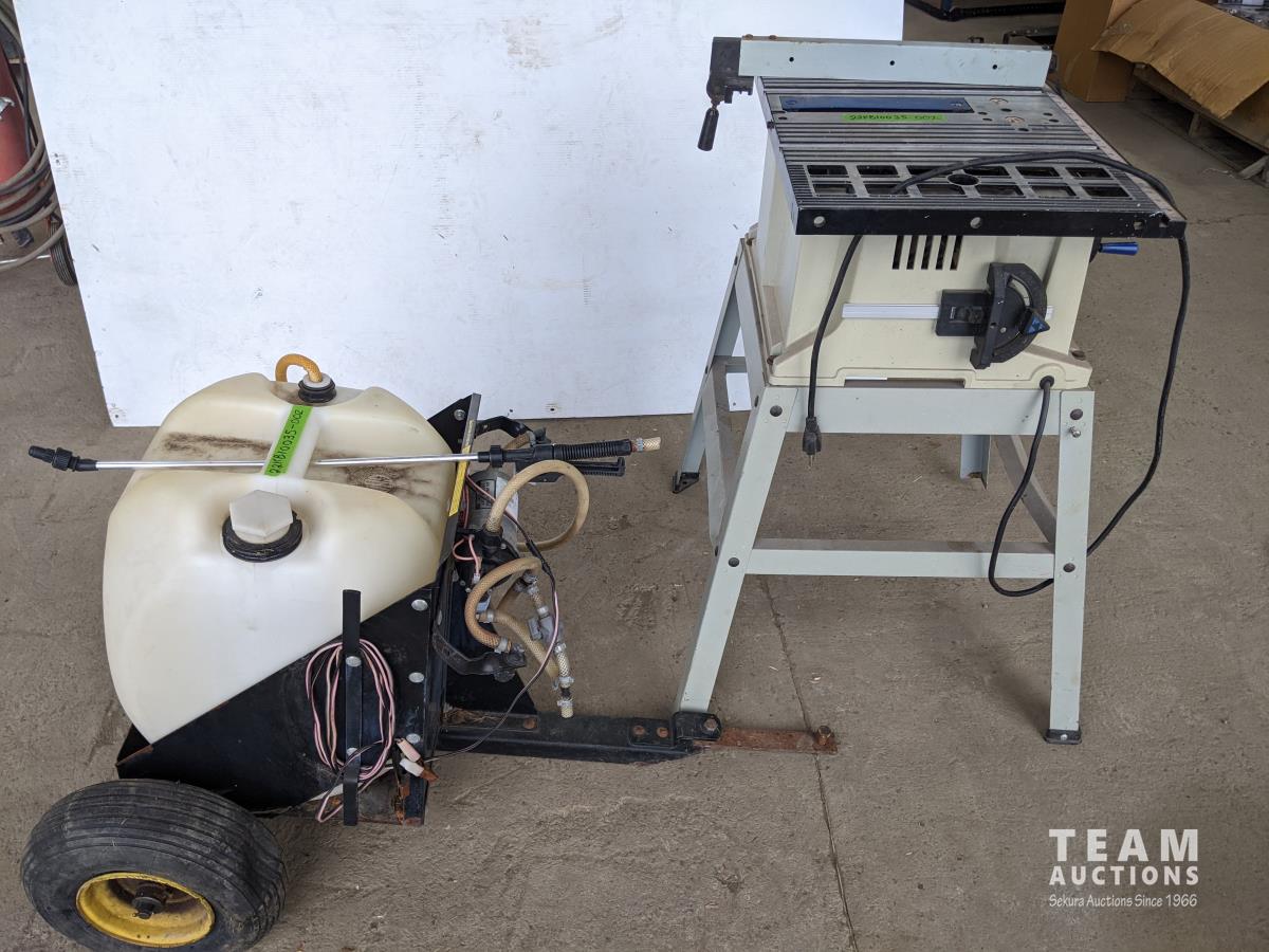 1993 John Deere 15 Gallon Pull Sprayer and Delta Table Saw (Inoperable)