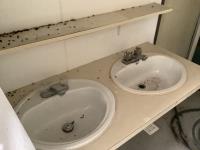 Insulated, propane heated, (2) men’s urinals, (4) sinks, (5) toilet stalls