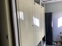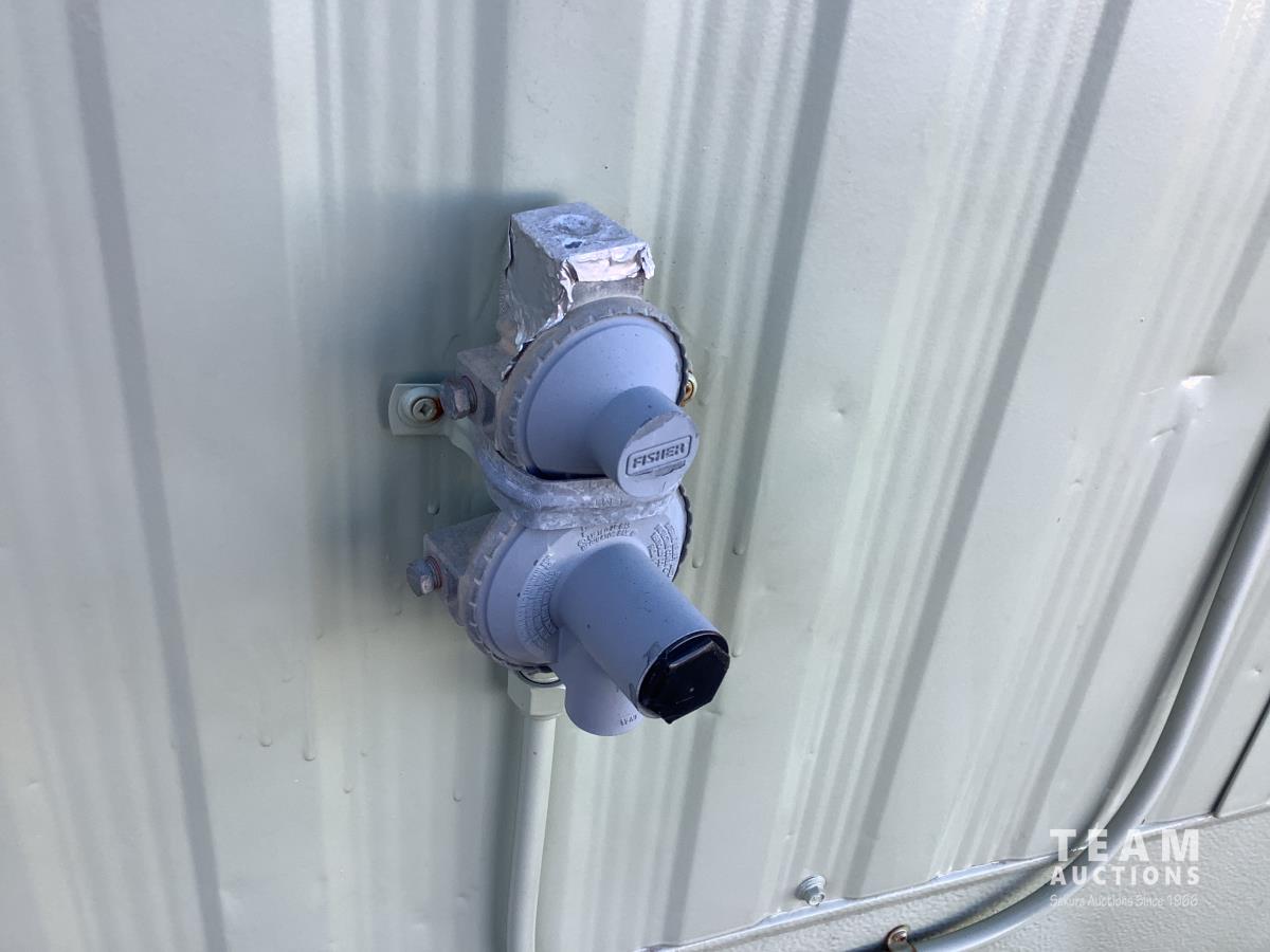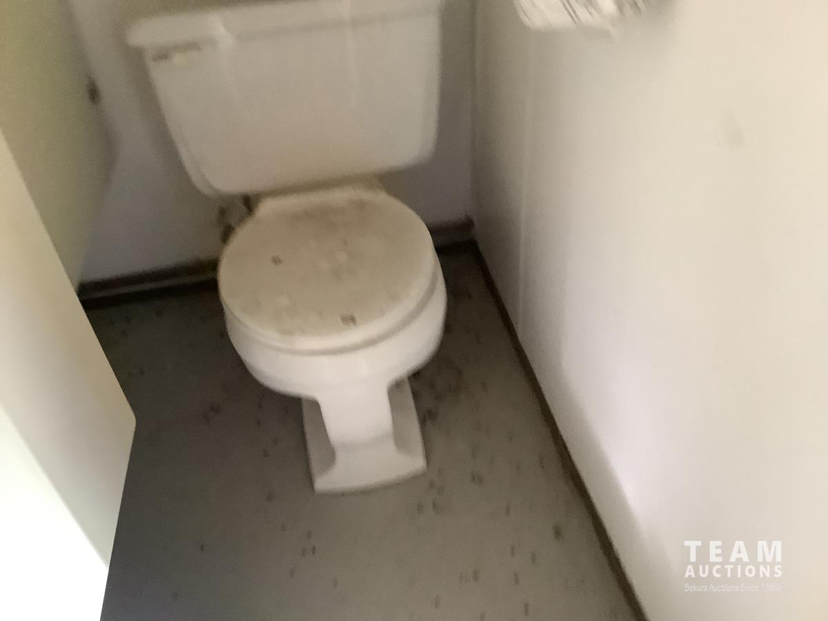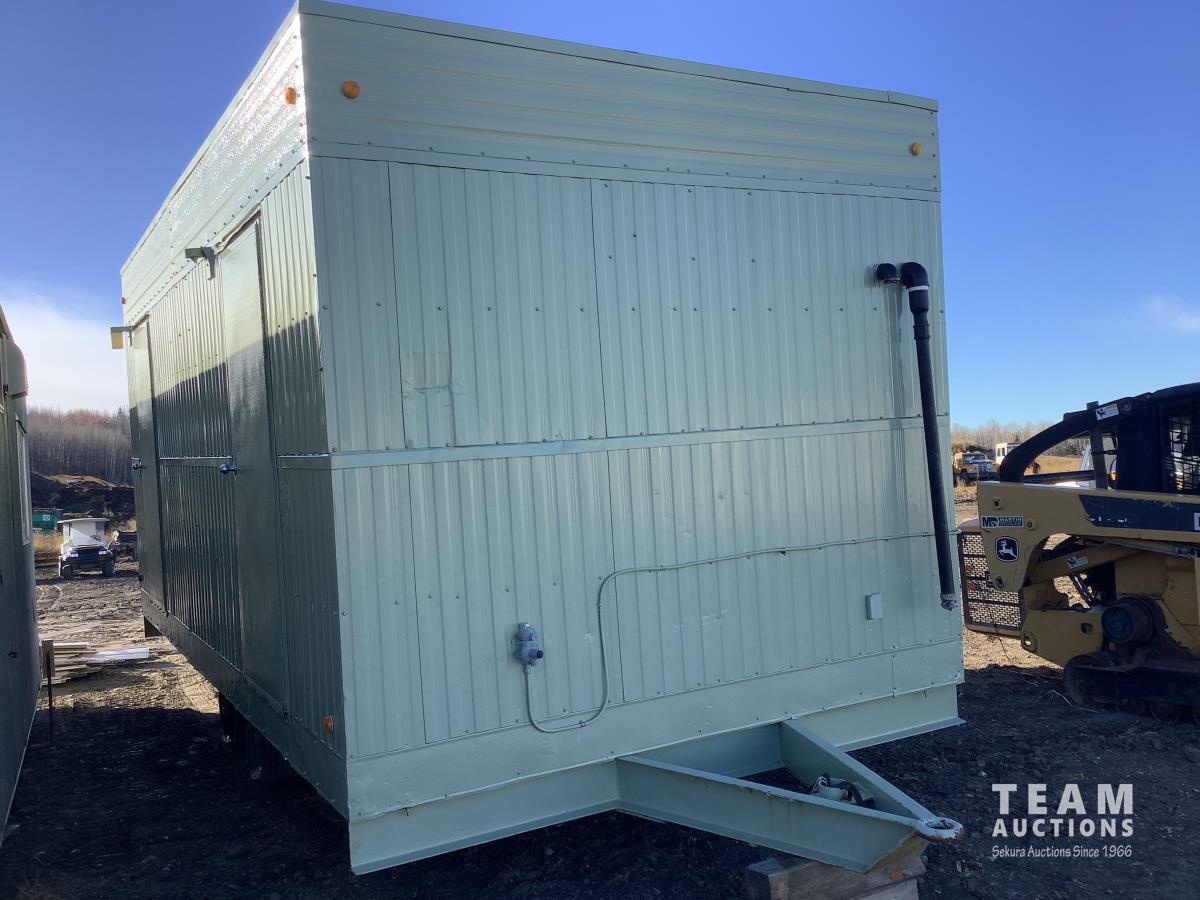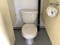 Insulated, propane heated, (2) men’s urinals, (4) sinks, (5) toilet stalls