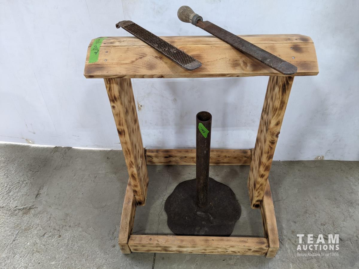 1074 Saddle Stand, (2) Files and Metal Hoof Trimming Stand
