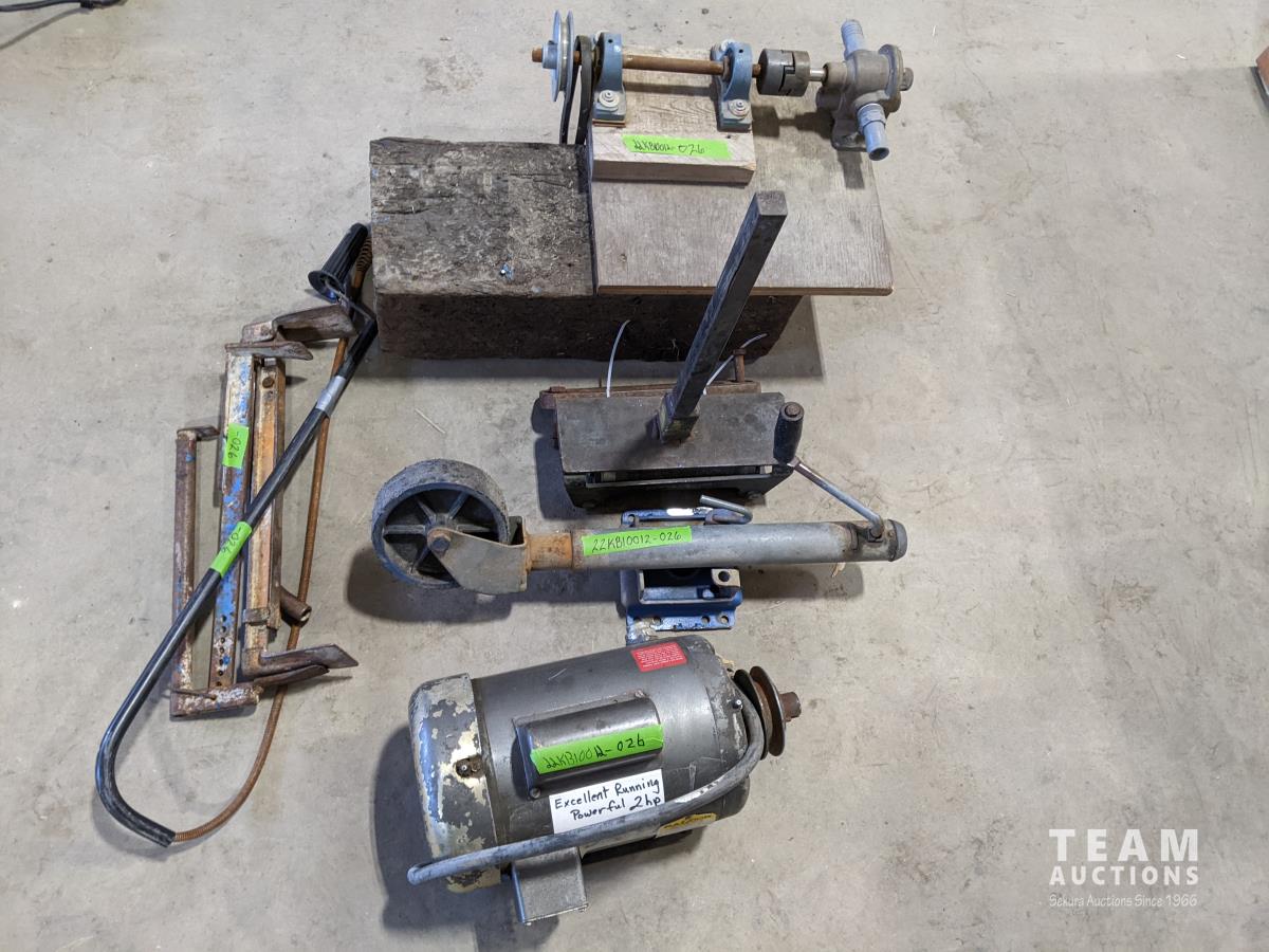 1193 Trailer Jack, Baldor 2 HP Electric Motor, Toilet Snake, Pair of Cement Block Carriers