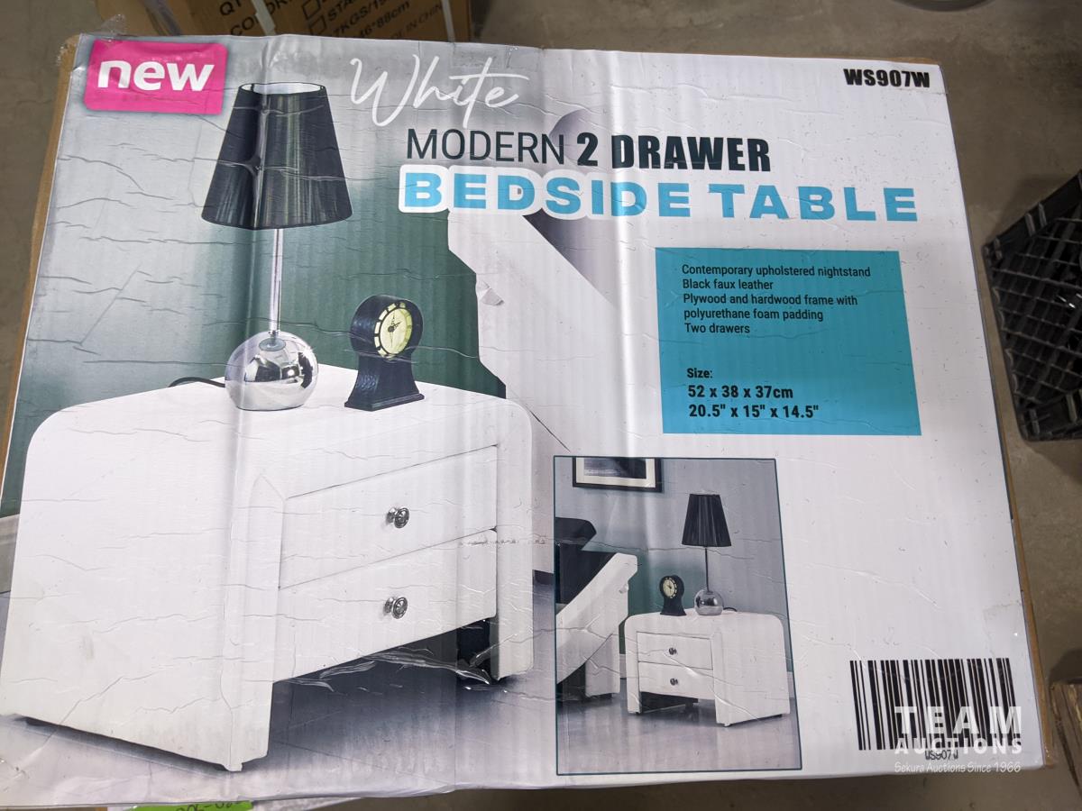 1606 White Modern 2 Drawer Bedside Table (Unused)