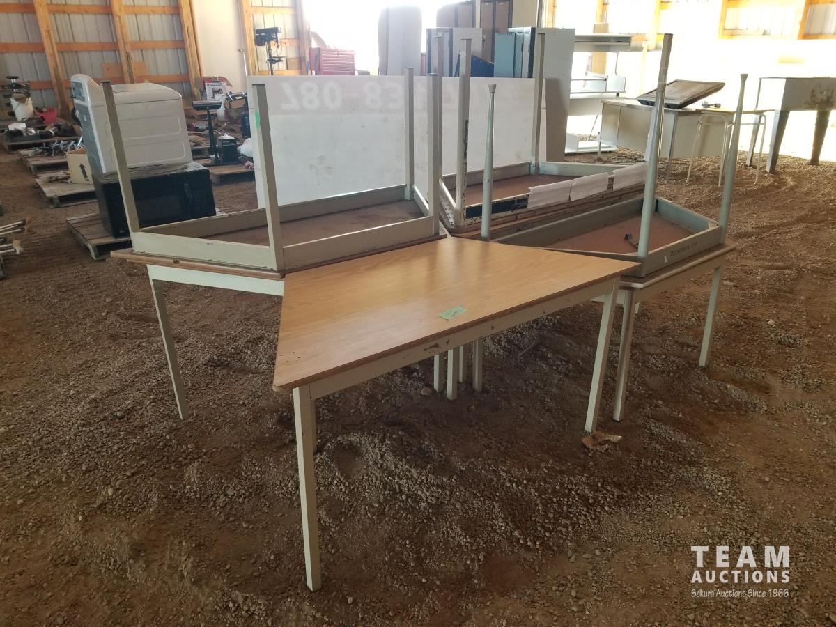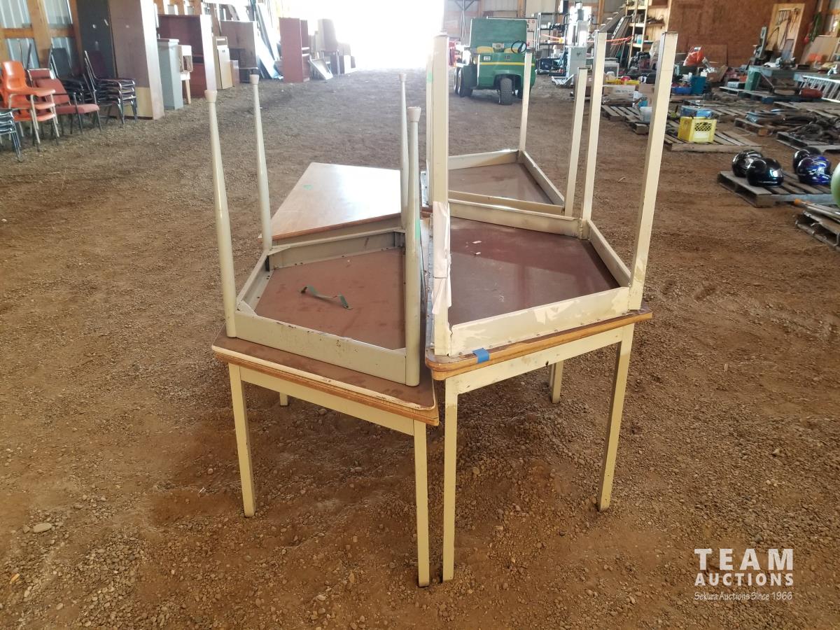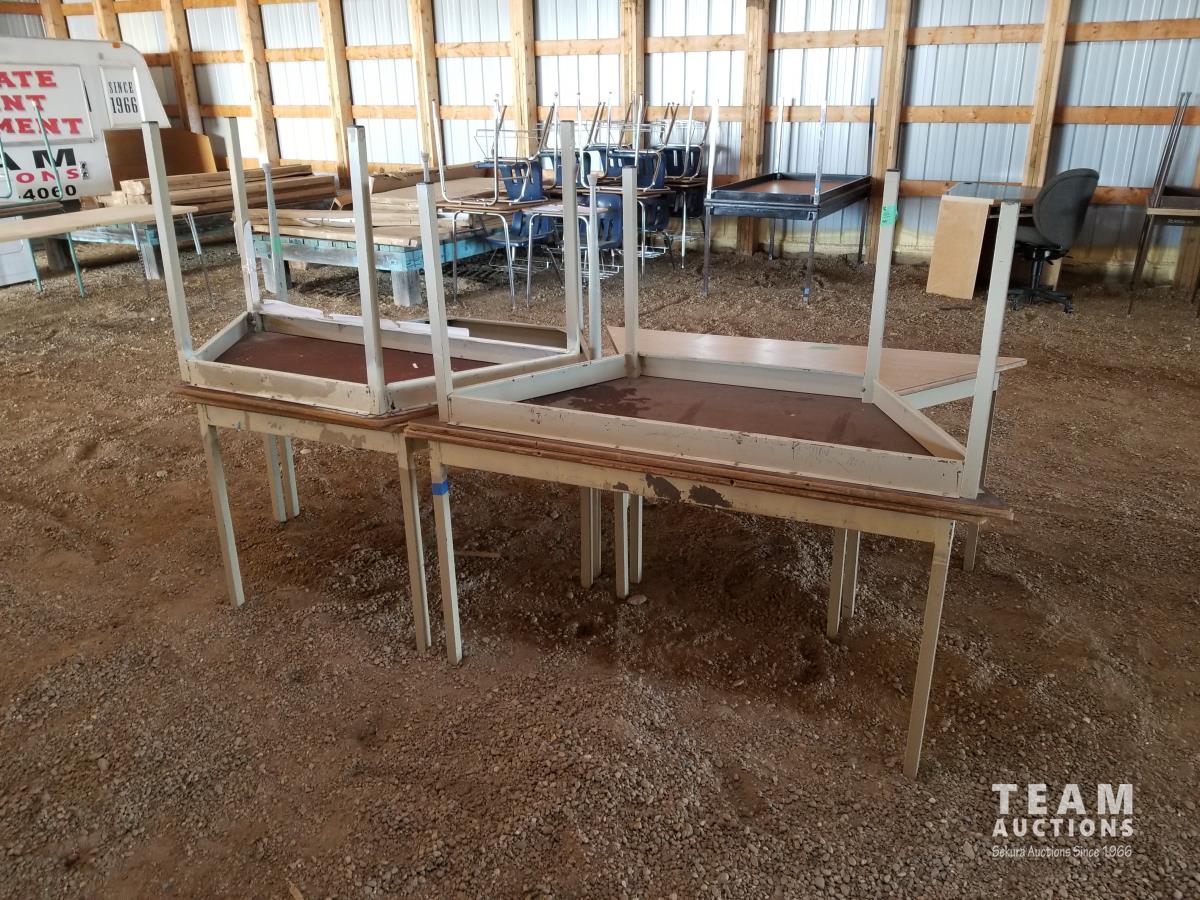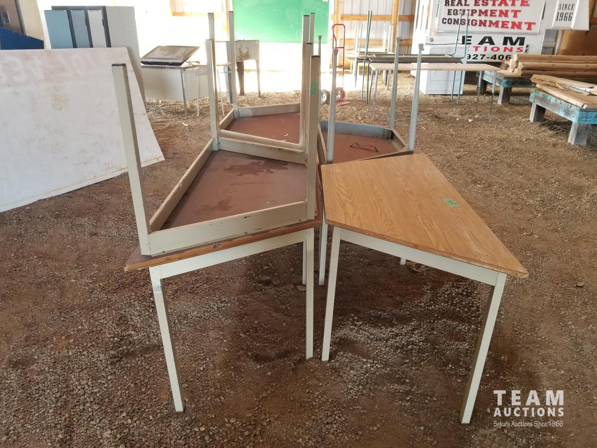 55 (7) Wood Top Steel Frame Tables