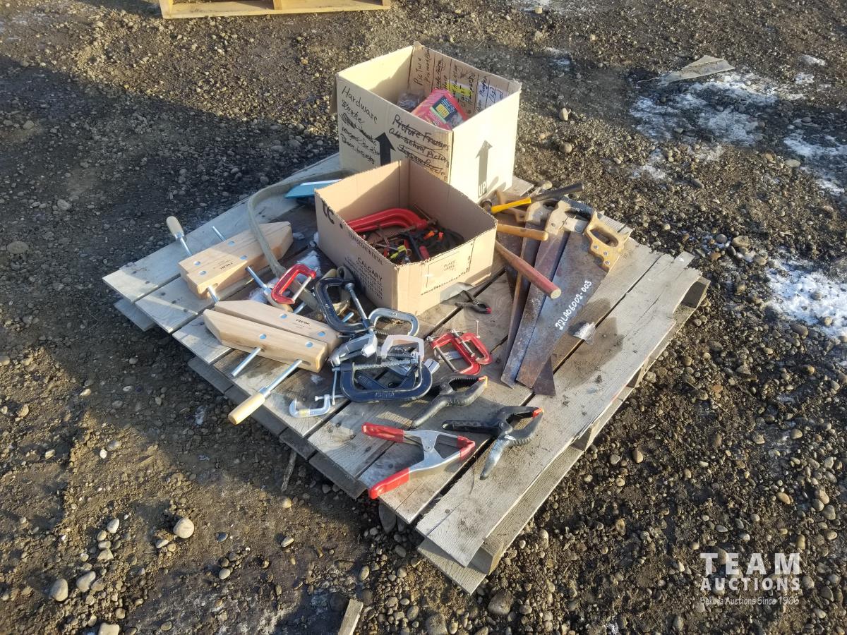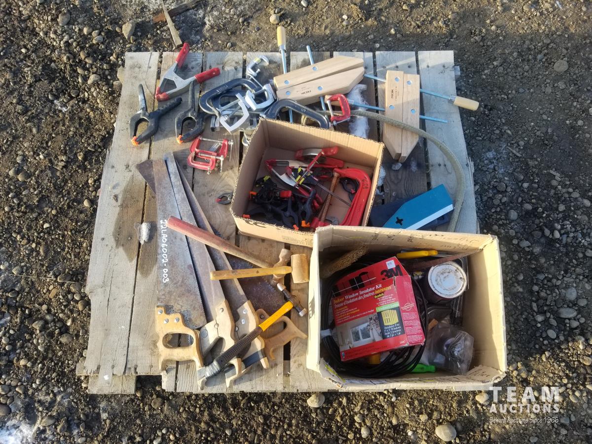 Miscellaneous hand saws, hammers, clamps, miscellaneous shop tools