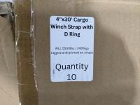 1121 (10) 4 Inch X 30 Ft Cargo Winch Straps with D Ring (Unused)