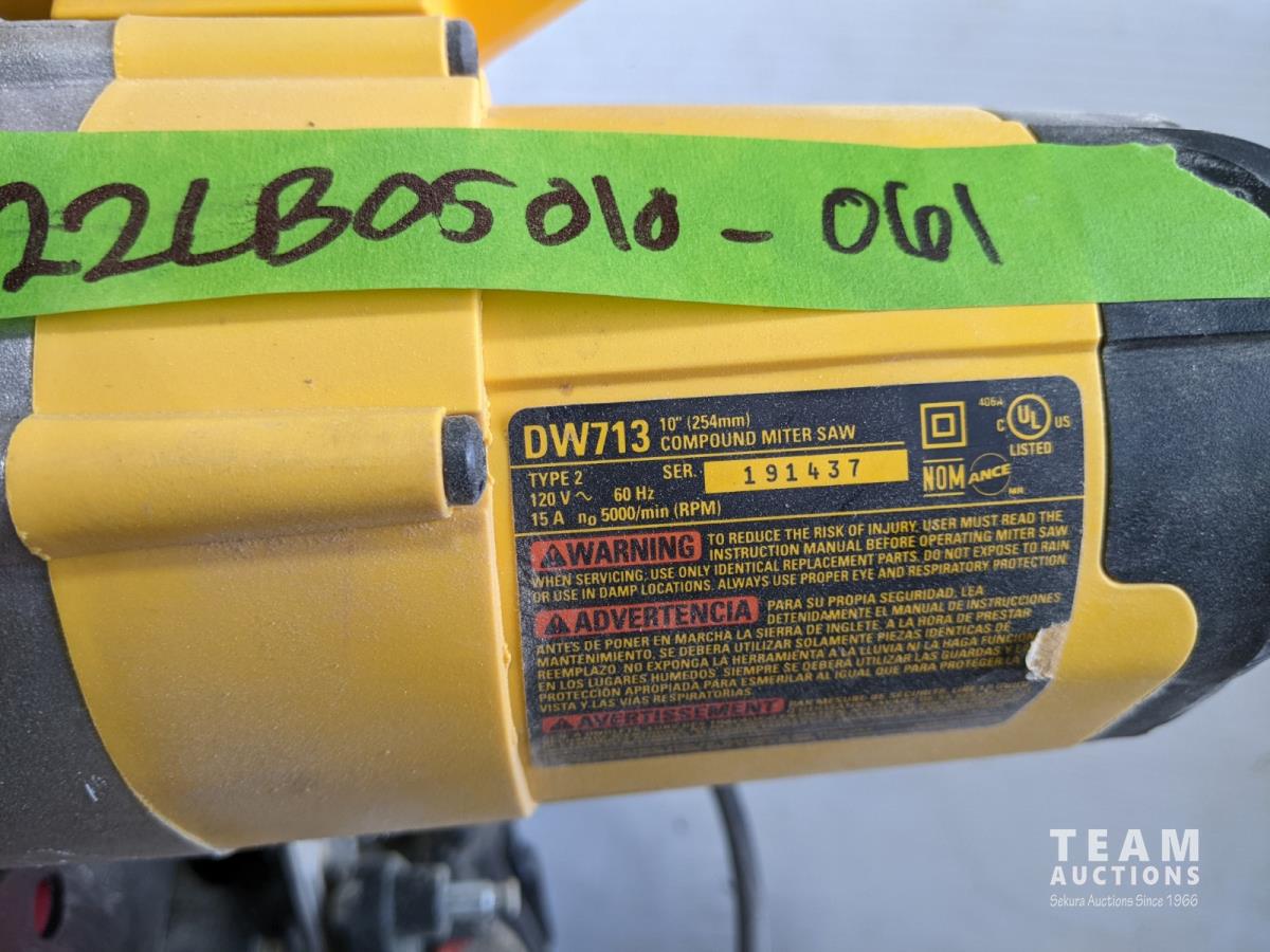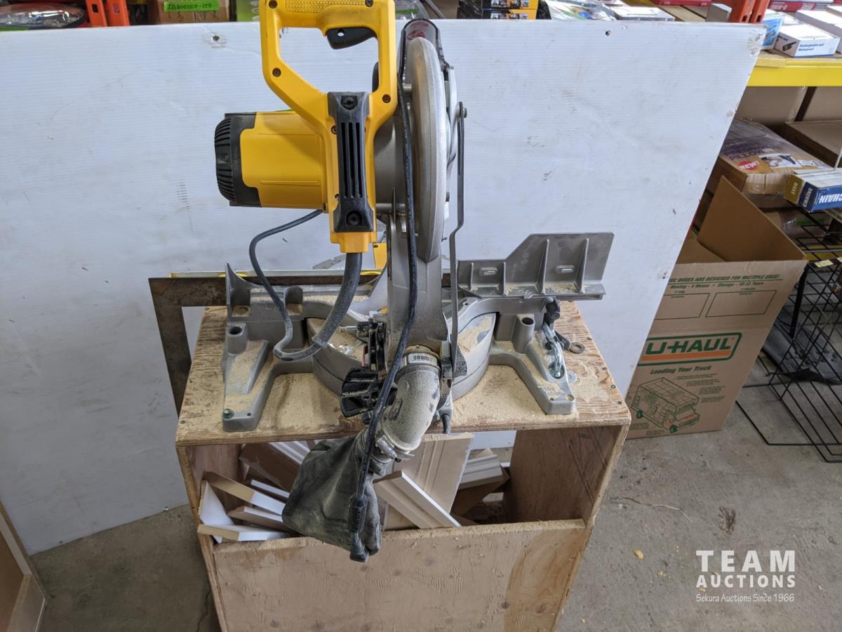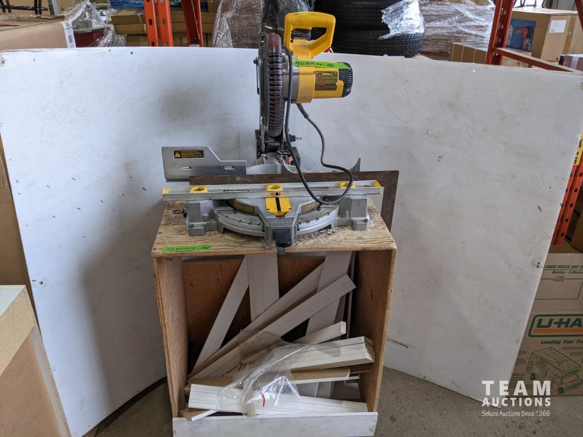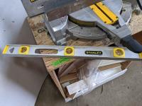 1006 10 Inch Dewalt Compound Miter Saw On Stand with Wheels, Baseboard Cut Offsnds and Stanley Level
