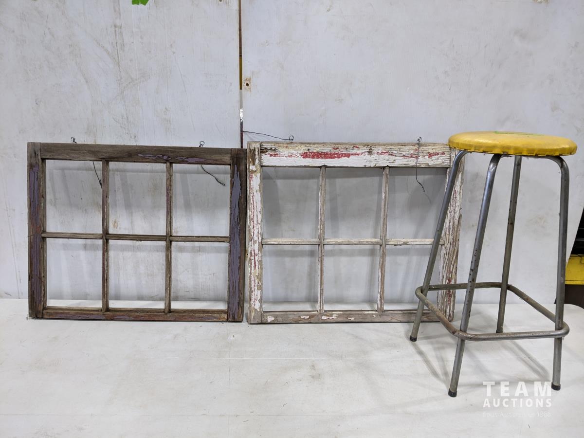 1581 (2) Antique Window Frames and Stool
