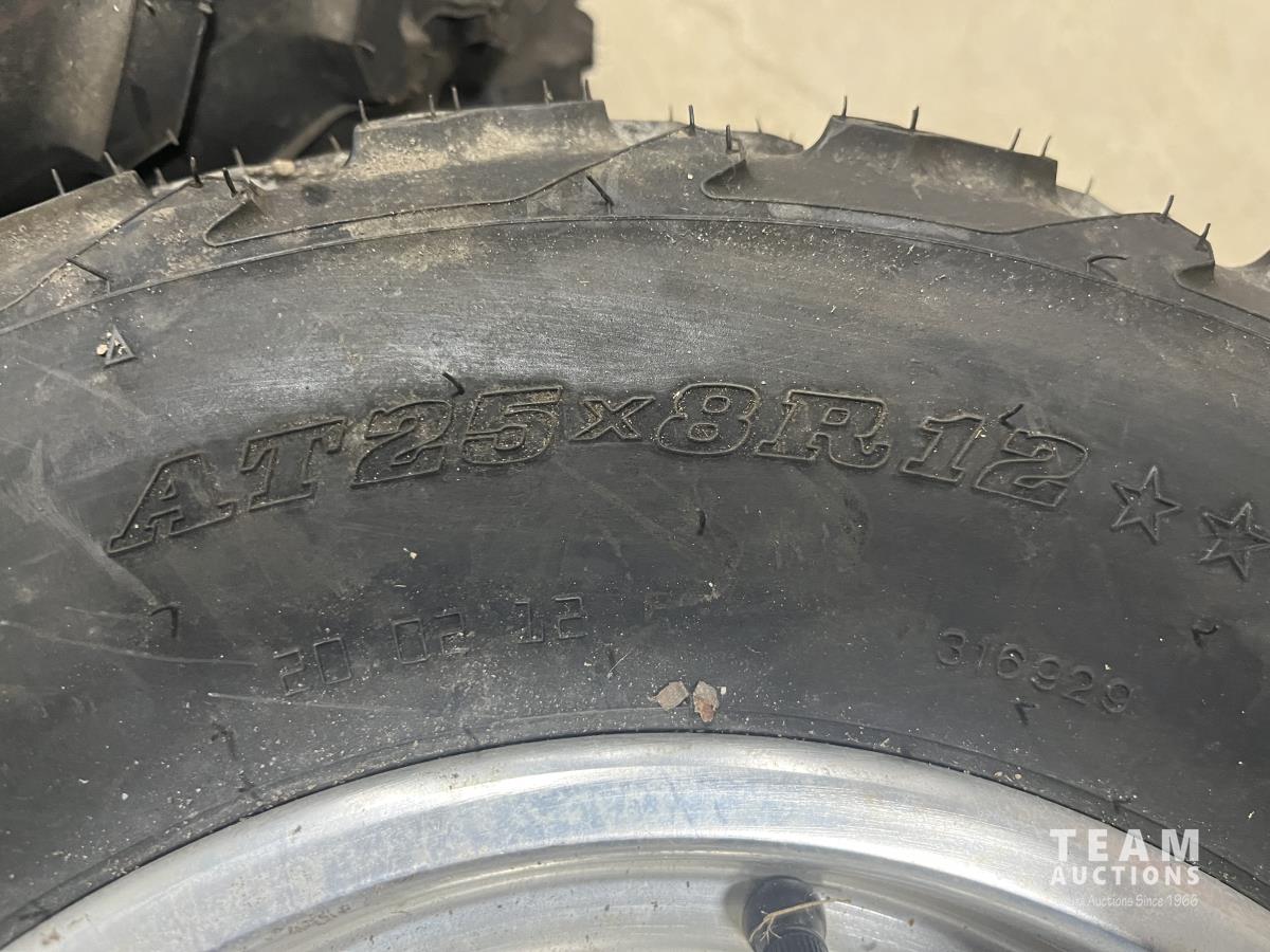 1607 (2) Dunlop 25X8R12 ATV Tires with rims (Unused)