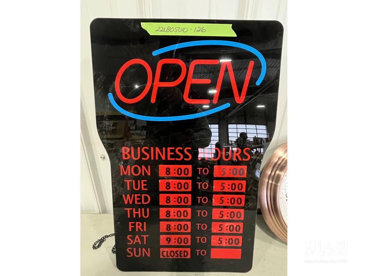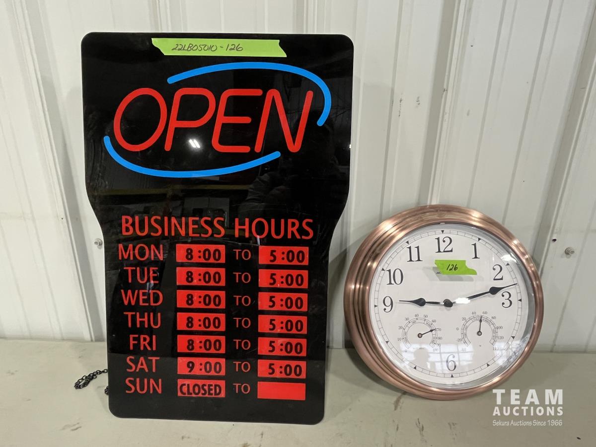 1596 24 Inch X 16 Inch Open Sign & 13 Inch Clock