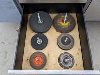 With welding rods, safety glasses, welding gloves, grinding discs, ball bearing drawer guides, hardwood top, on casters