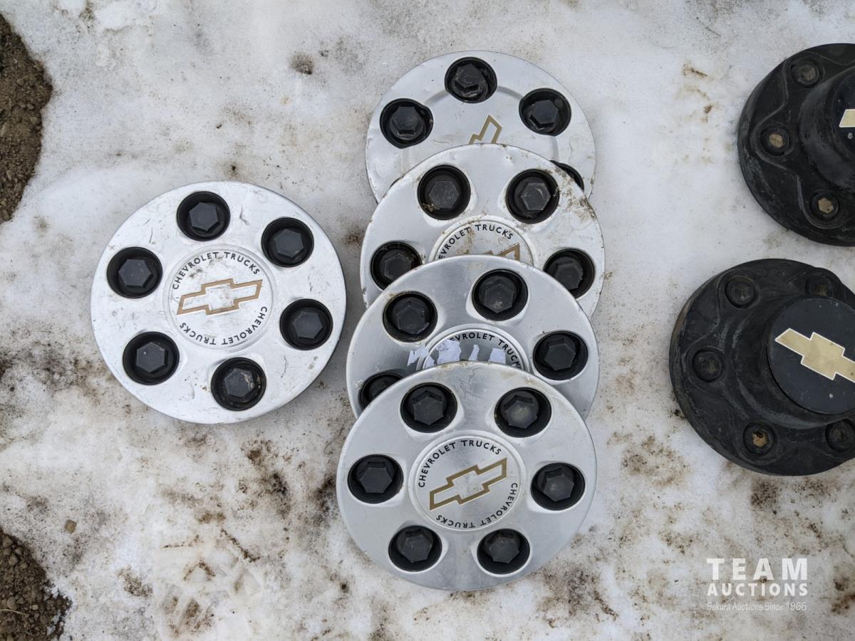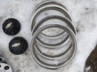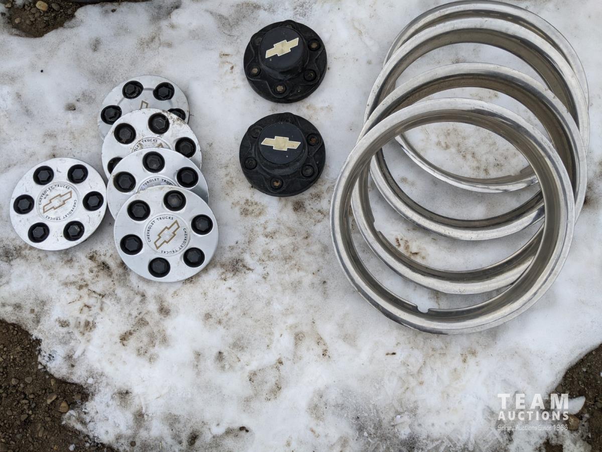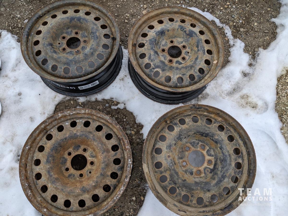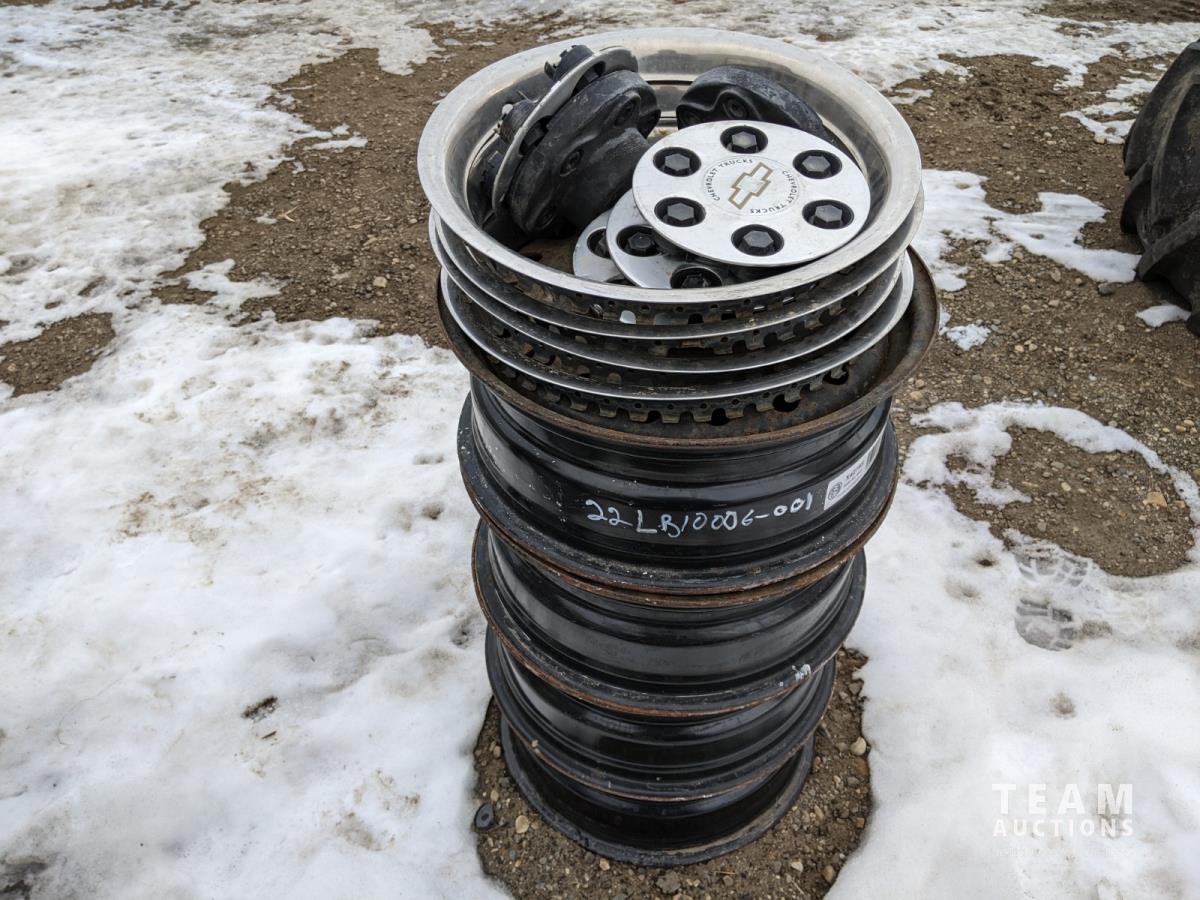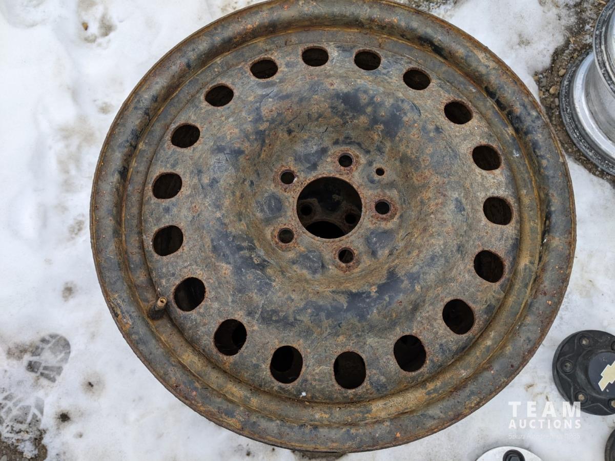 2407 (4) 17 Inch 5 Bolt Steel Rims and (4) 17 Inch 6 Bolt Caps & Rings