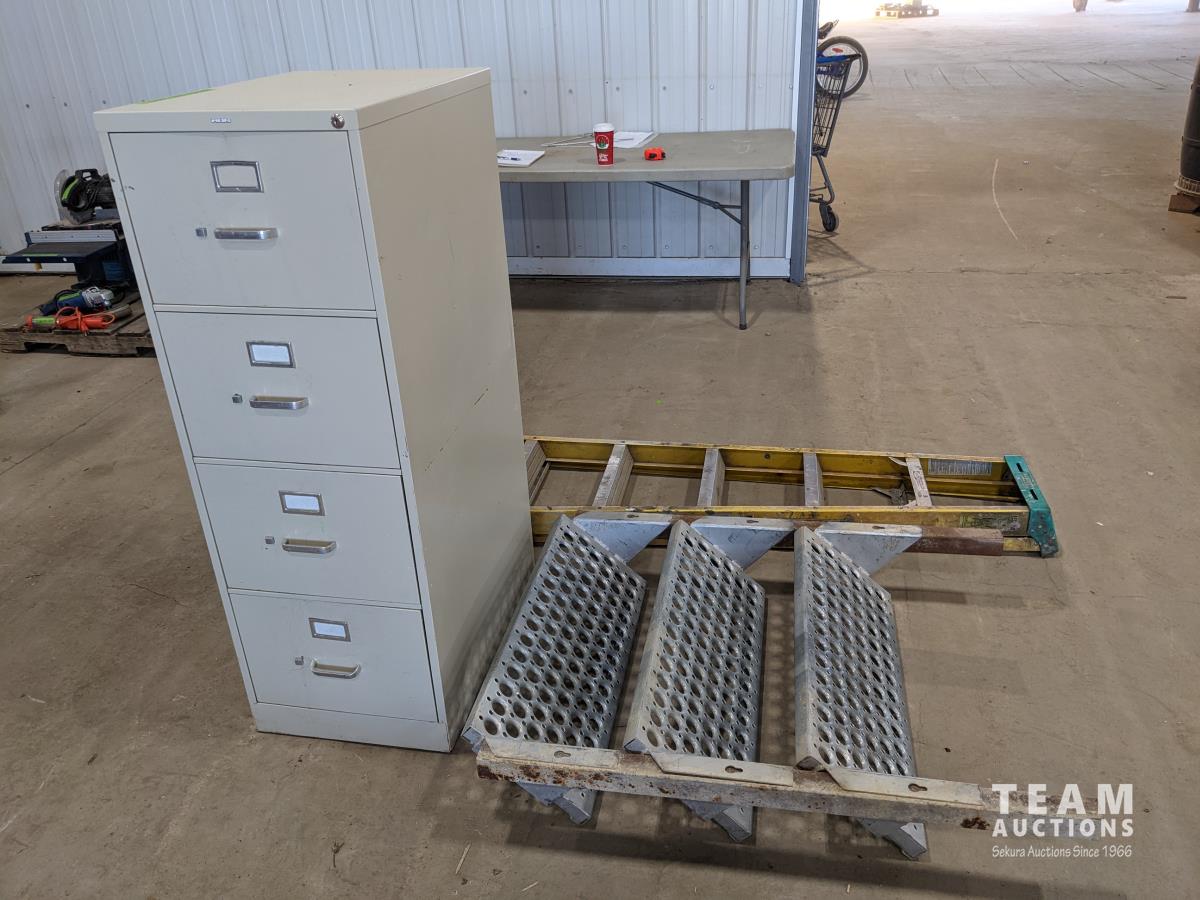 1025 4 Drawer Filing Cabinet, 6 Ft Step Ladder & 3 Step Metal Stairs