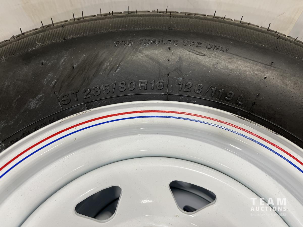1903 (4) Grizzly 235/80R16 Trailer Tires on 8 Bolt Rims (Unused)