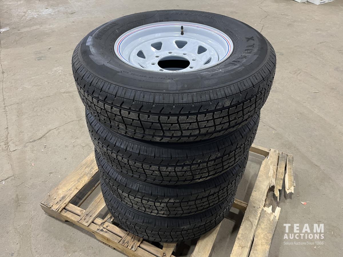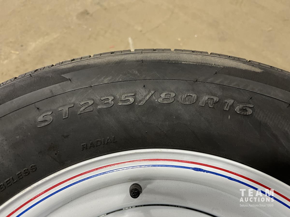 1904 (4) Grizzly 235/80R16 Trailer Tires on 8 Bolt Rims (Unused)