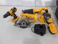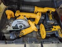 Drill, circular saw, reciprocating saw, flashlight and batteries