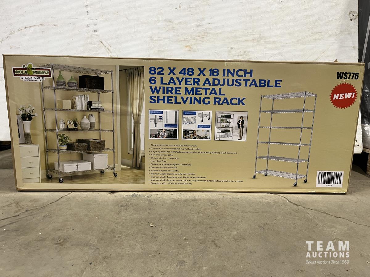 1544 48 Inch 6 Shelf Adjustable Metal Wire Rack (Unused)