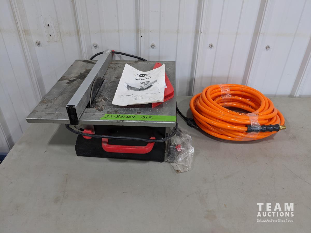 1223 7 Inch Wet Tile Saw, 3/8 Inch Air Hose & Blue Tote