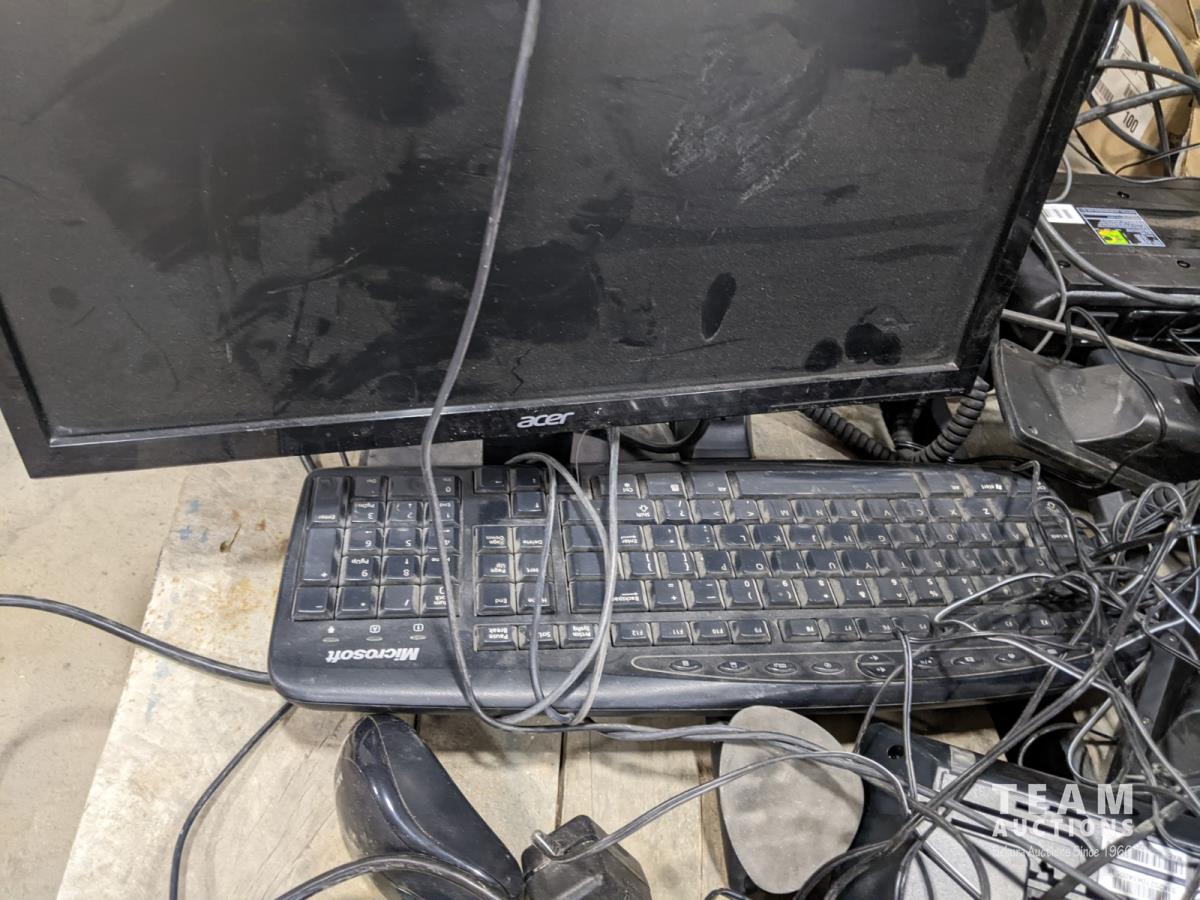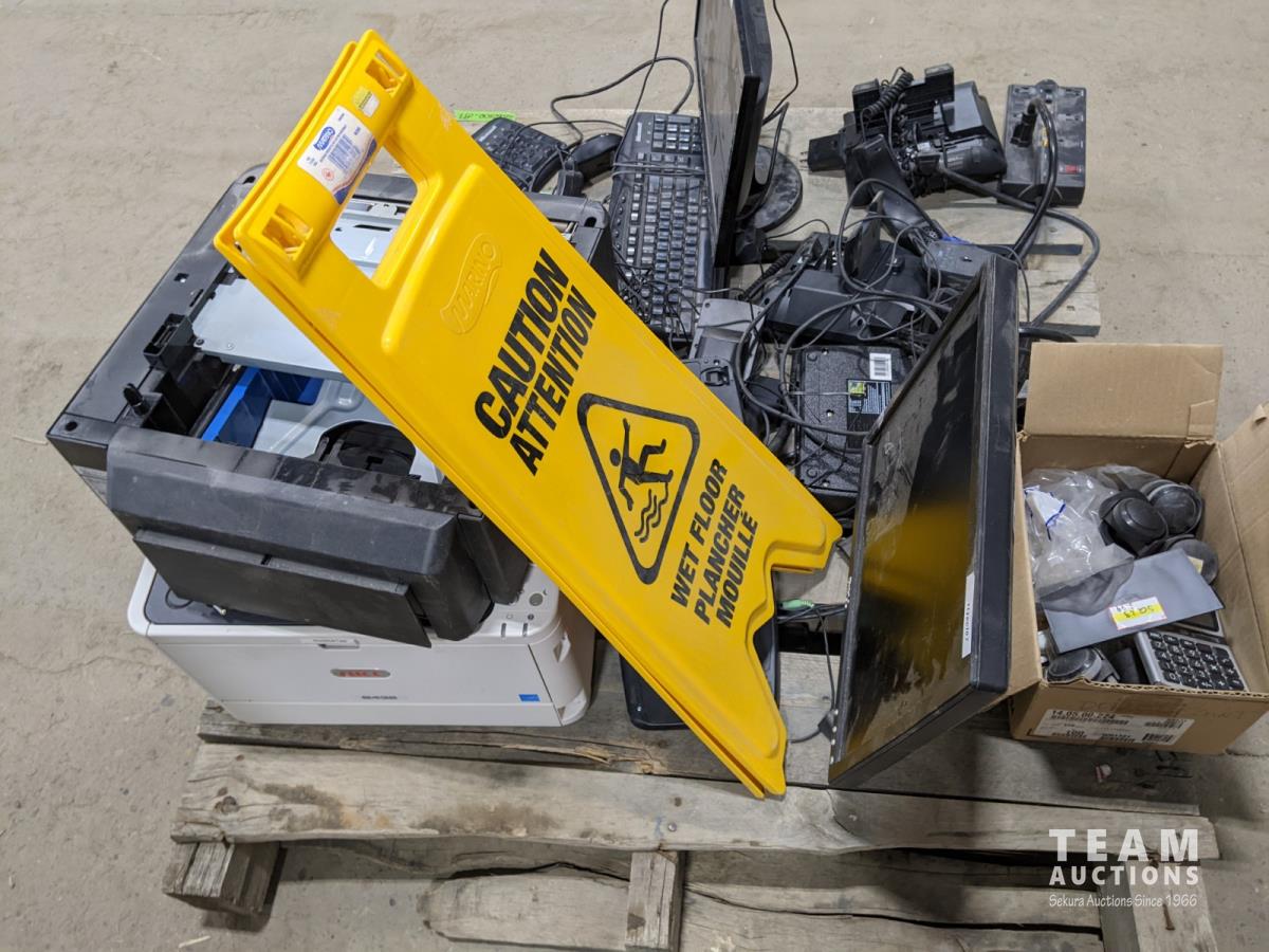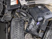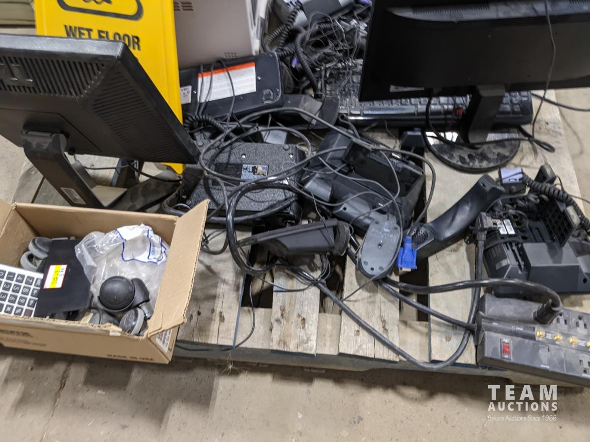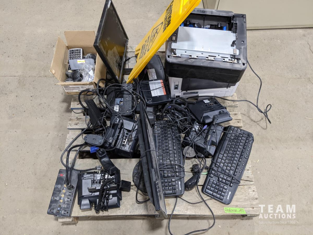 Office electronics, phones, computer monitors, keyboards and printer