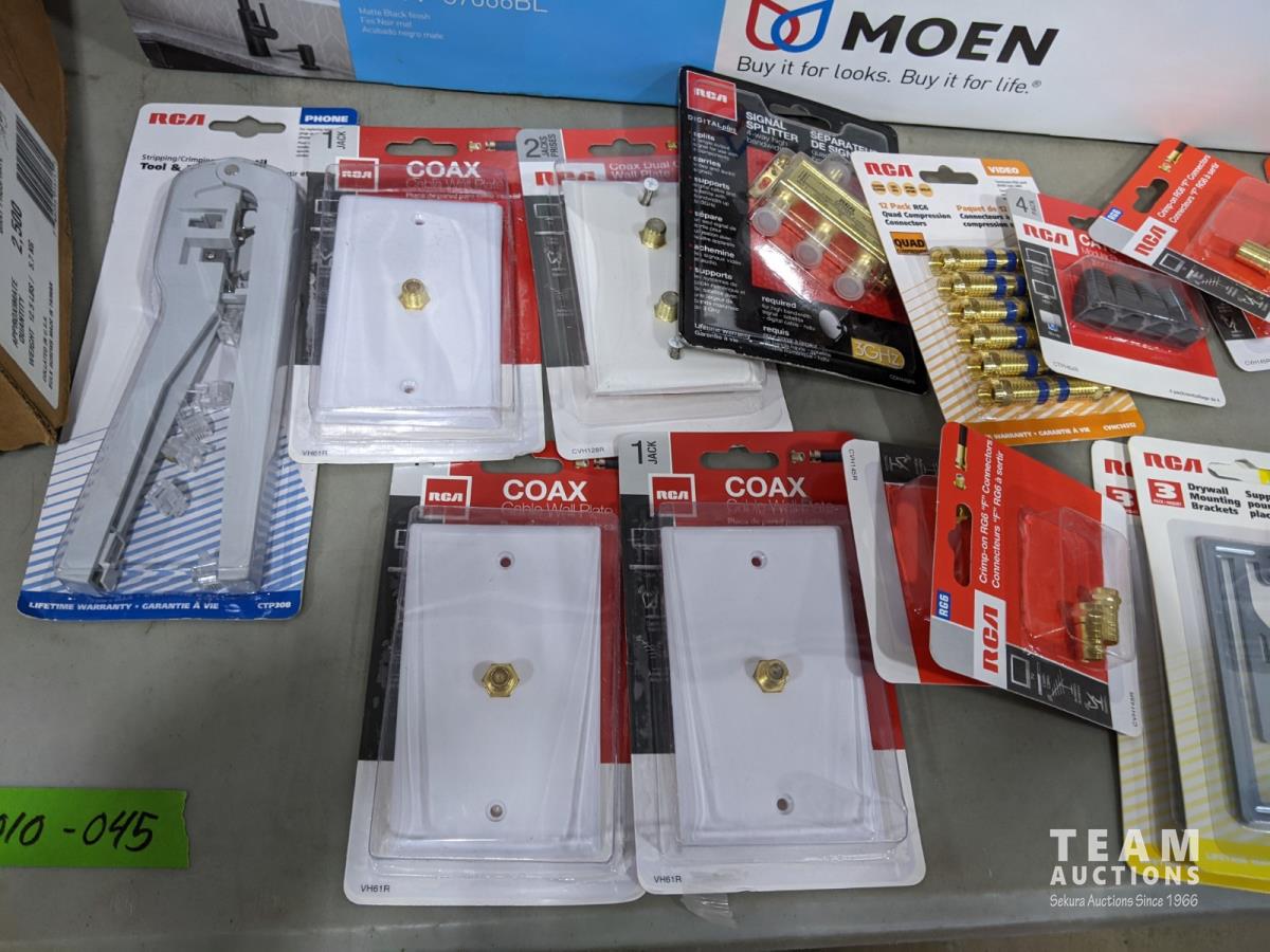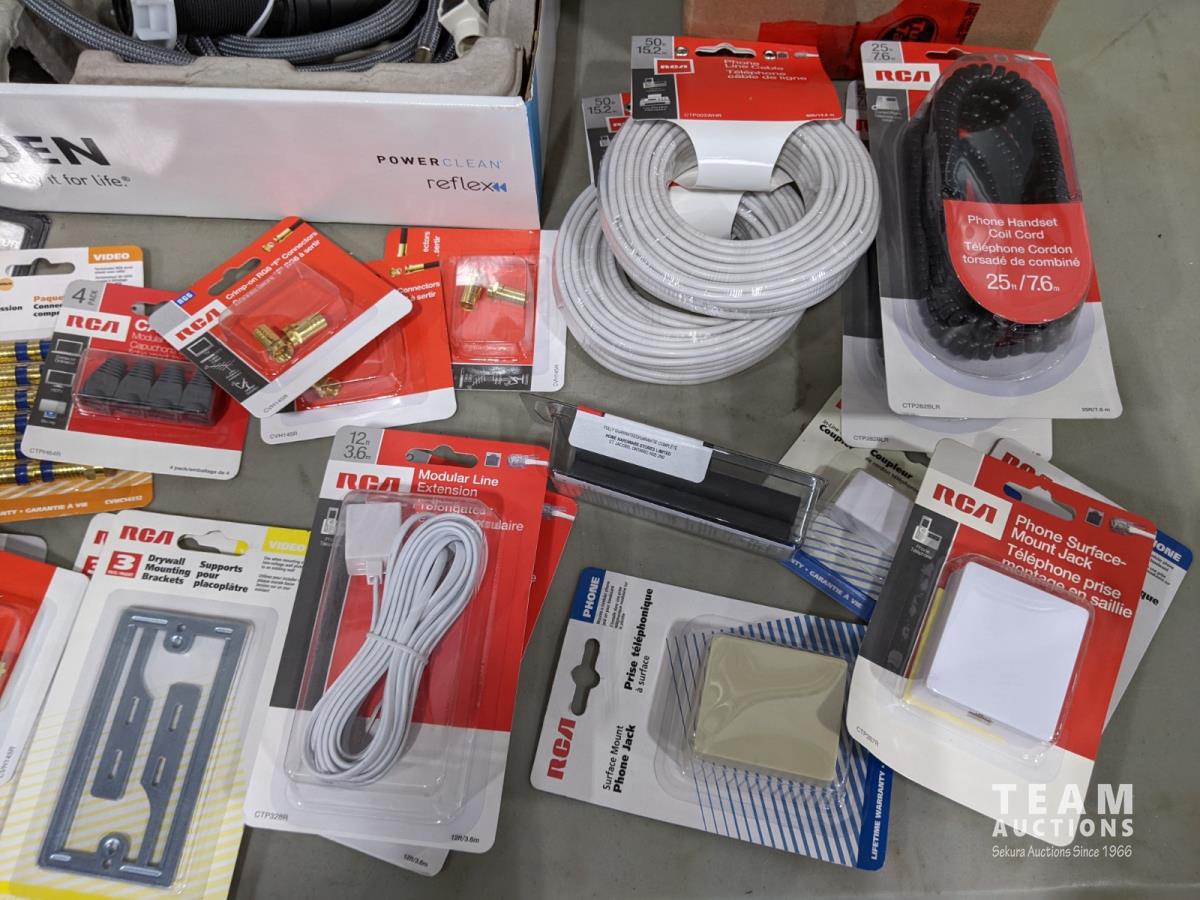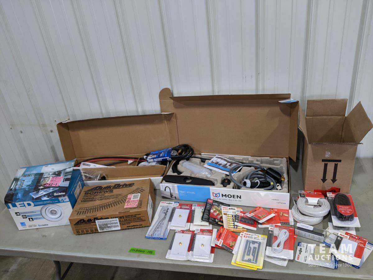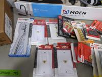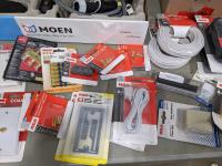 Pot light, box of collated quik load clip screws, (2) kitchen faucets, phone cords, phone line cables, phone jacks, cable wall plates and dryer power cord