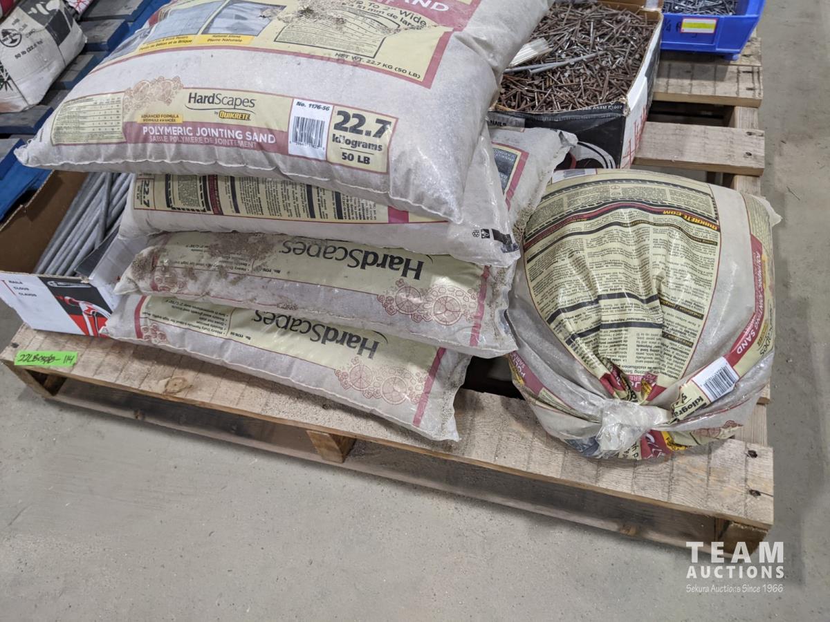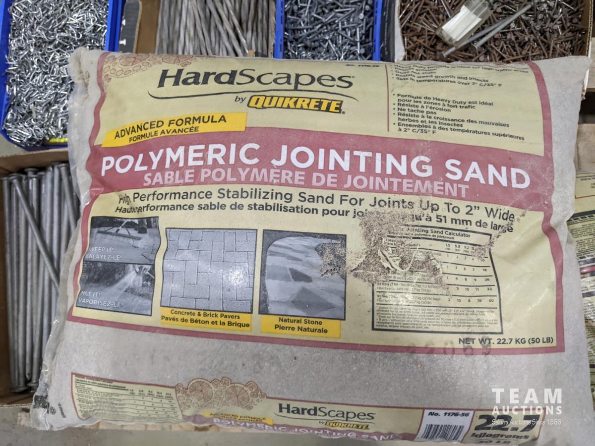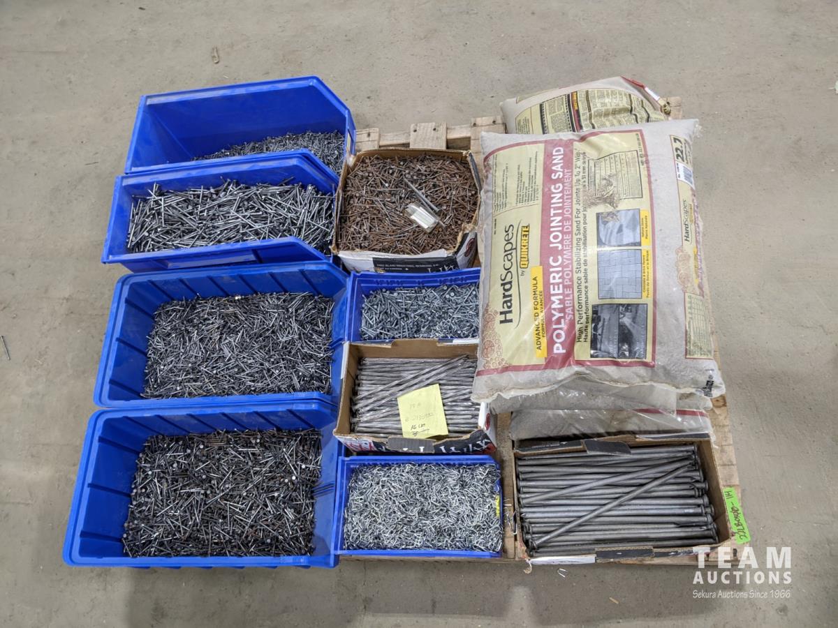 (9) Totes of miscellaneous nails and (5) bags of polymeric jointing sand
