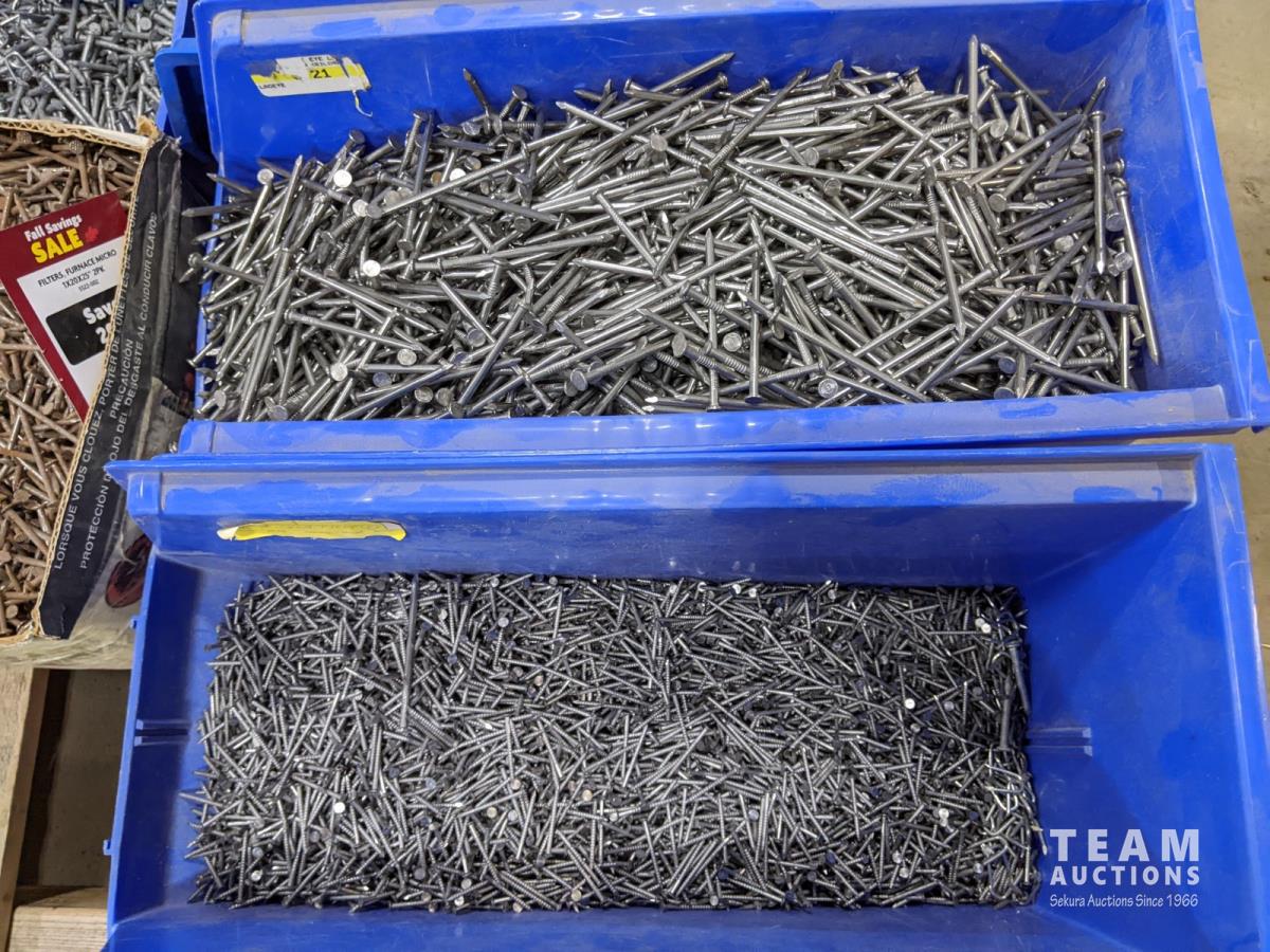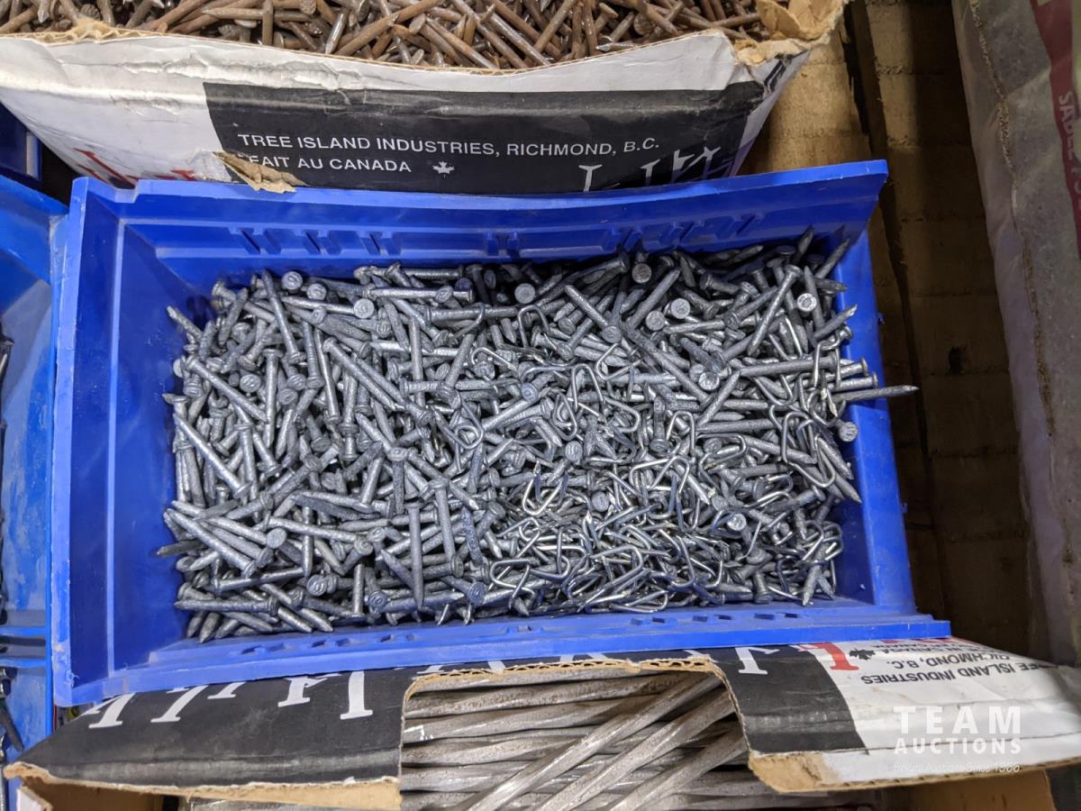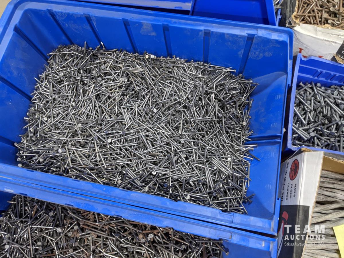 (9) Totes of miscellaneous nails and (5) bags of polymeric jointing sand