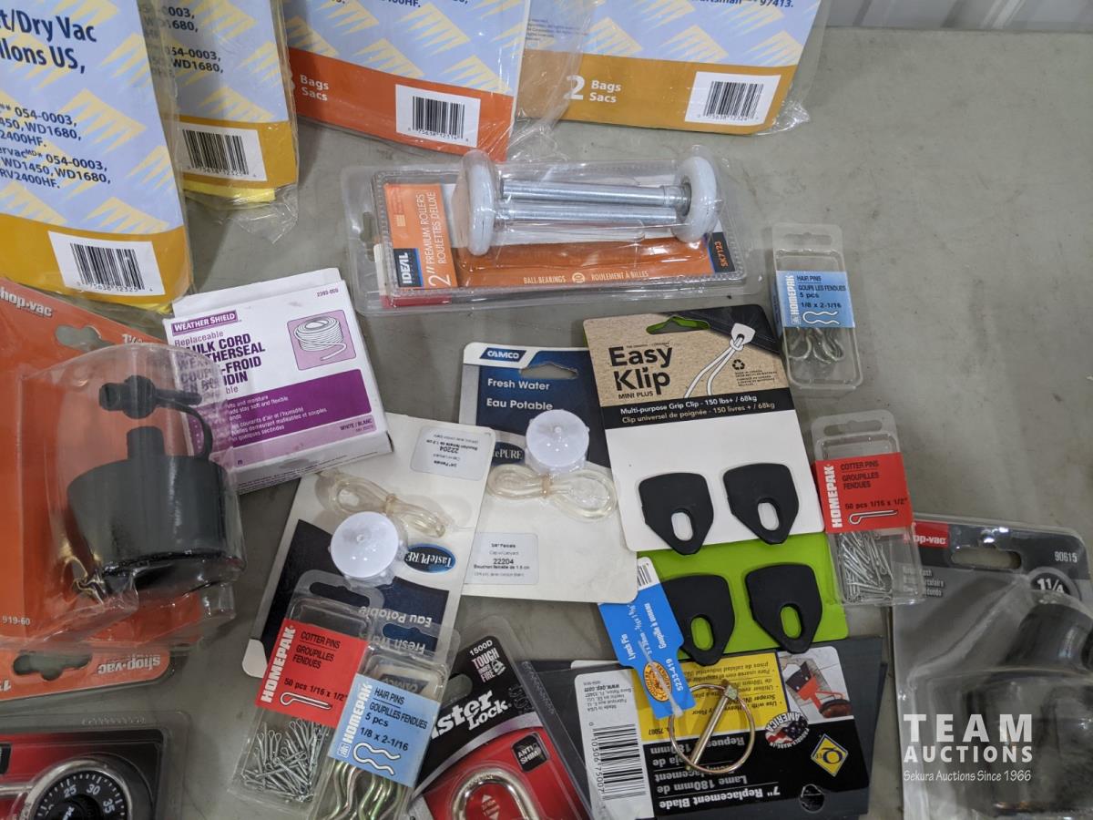 Shop vac bags, thermocraft lock assembly, door brackets, lock handles, putty and pins