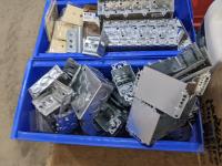 Assortment of electrical boxes, box of liqui-fire, safe strip exterior paint & stain strippers and beautitone wood-shield protector and end cut sealer