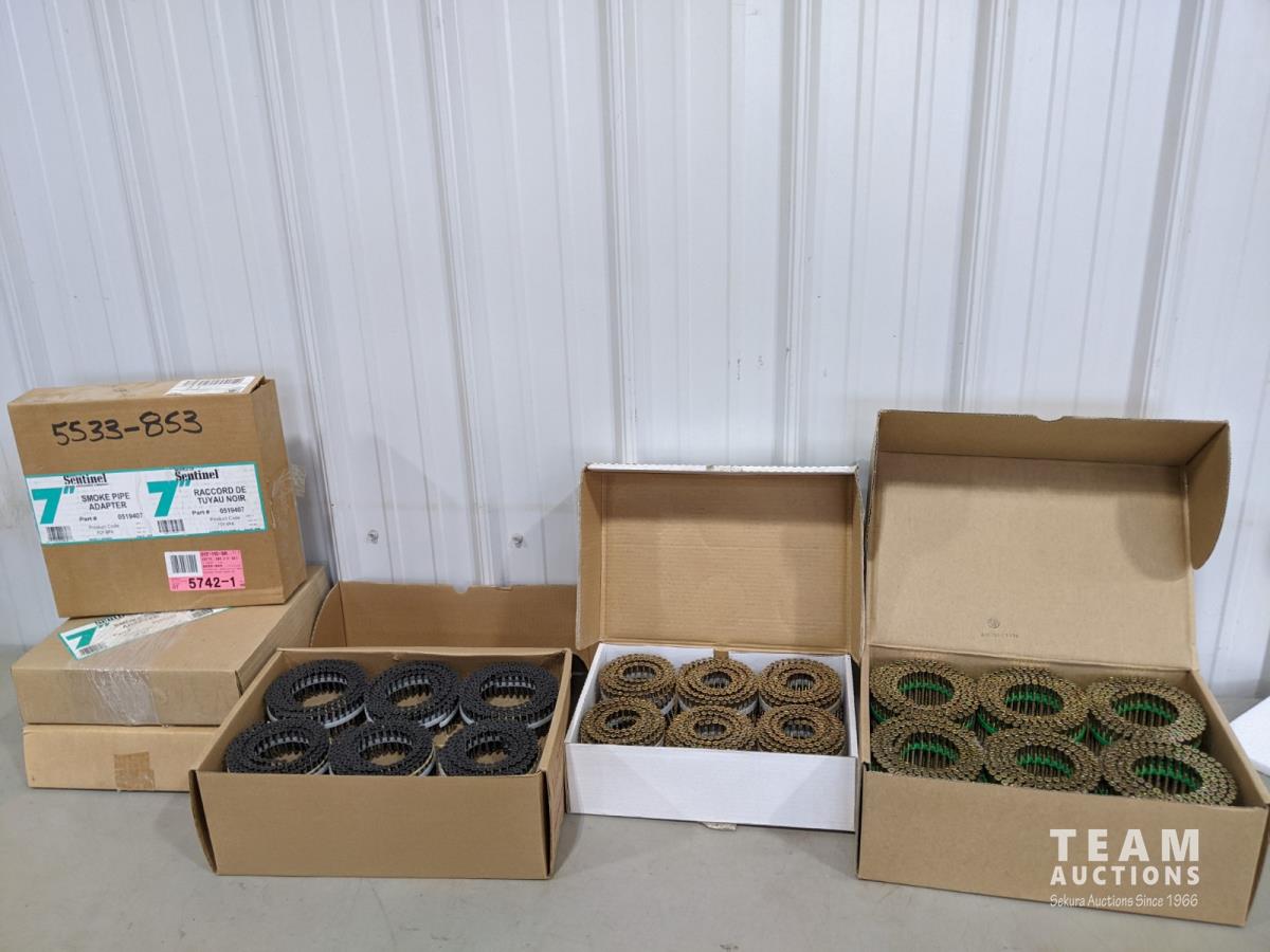 (3) 7 inch Smoke pipe adaptor, (1) box of drywall screws and (2) boxes of wood screws