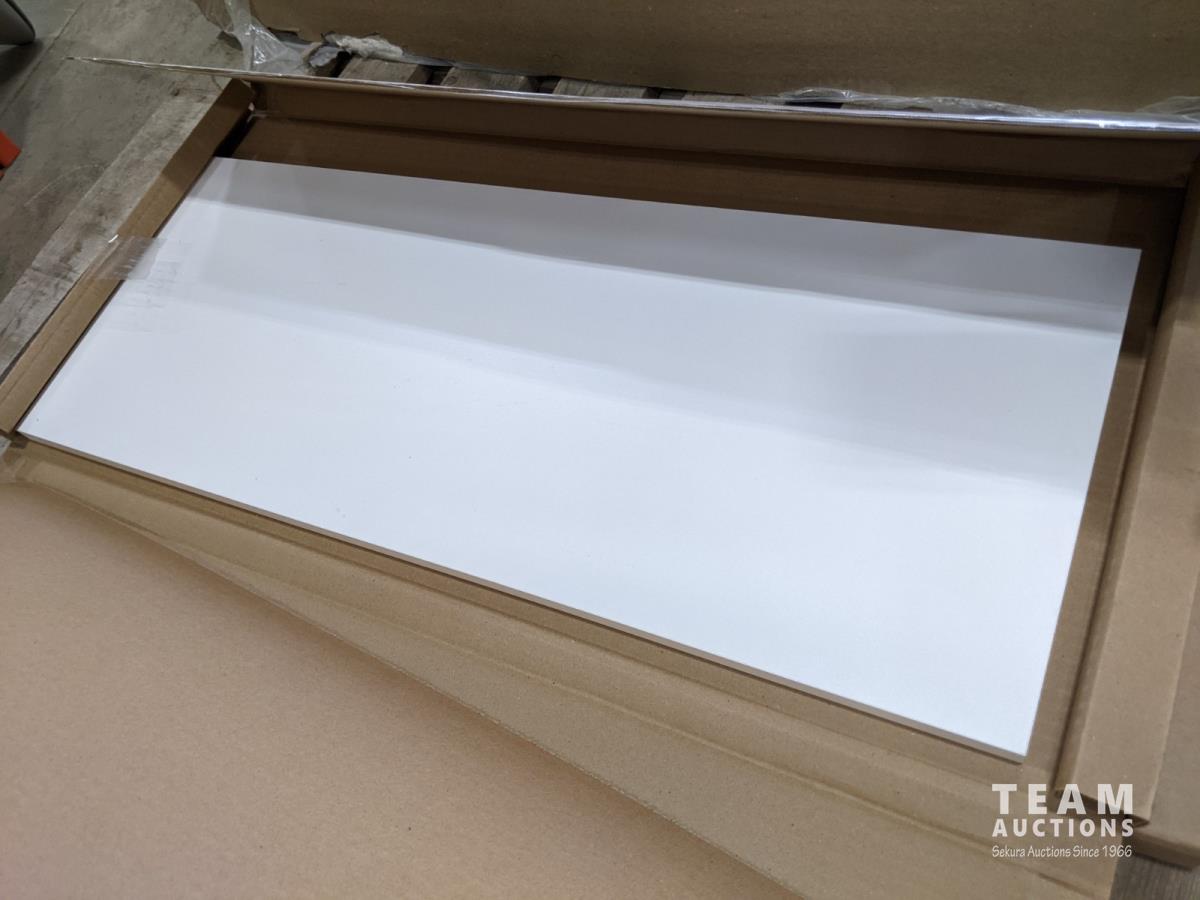 (10) pieces of ceiling tiles (covers 80 sq ft installed), (2) white malimin 11-7/8 inch x 30-1/8 inch door cupboard panels and corner shower rod