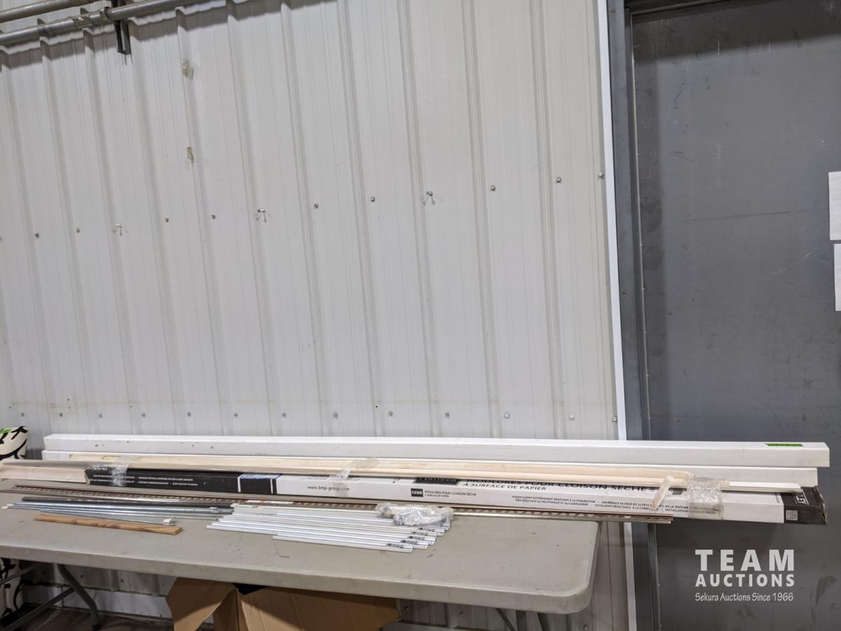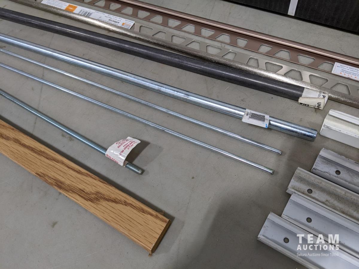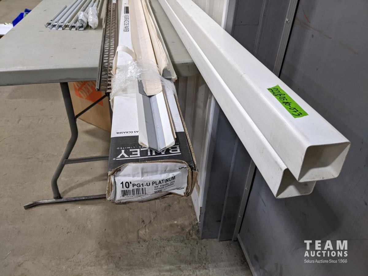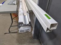 (2) PVC down spouts 2-1/2 inch x 2-1/2 inch x 10 ft box of square corner beads, tile edging, metal threaded rods and top and bottom rails for deck rails
