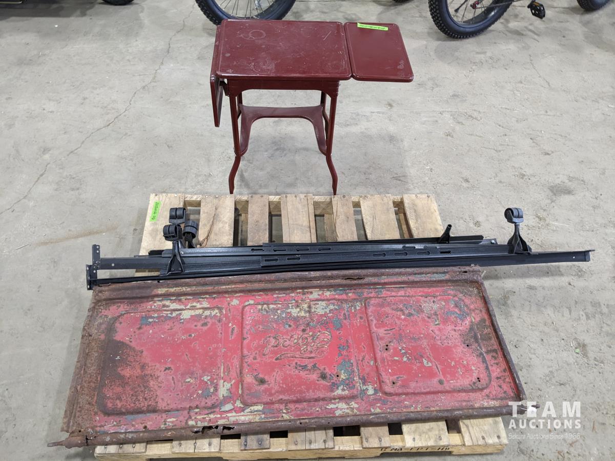 1460 Bed Frame, Antique Ford Tailgate and Rolling Table